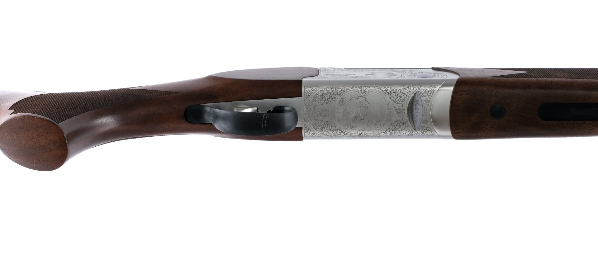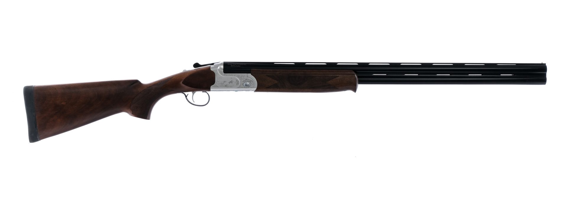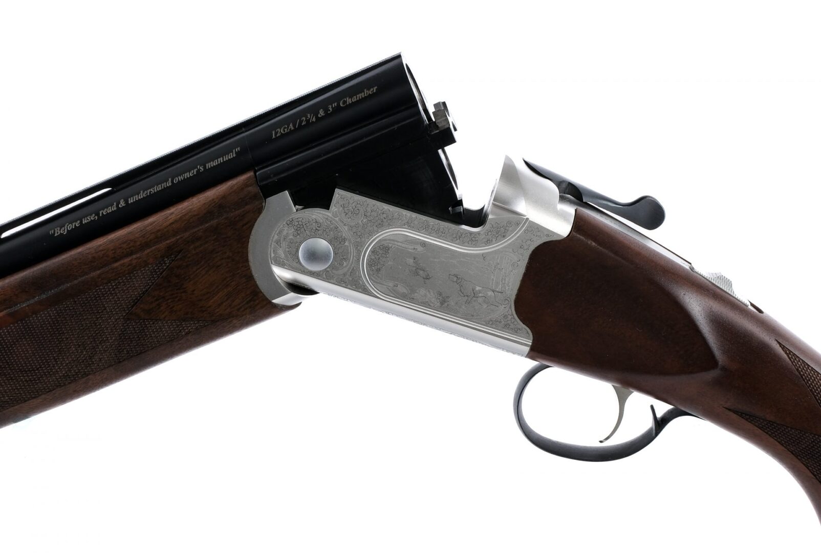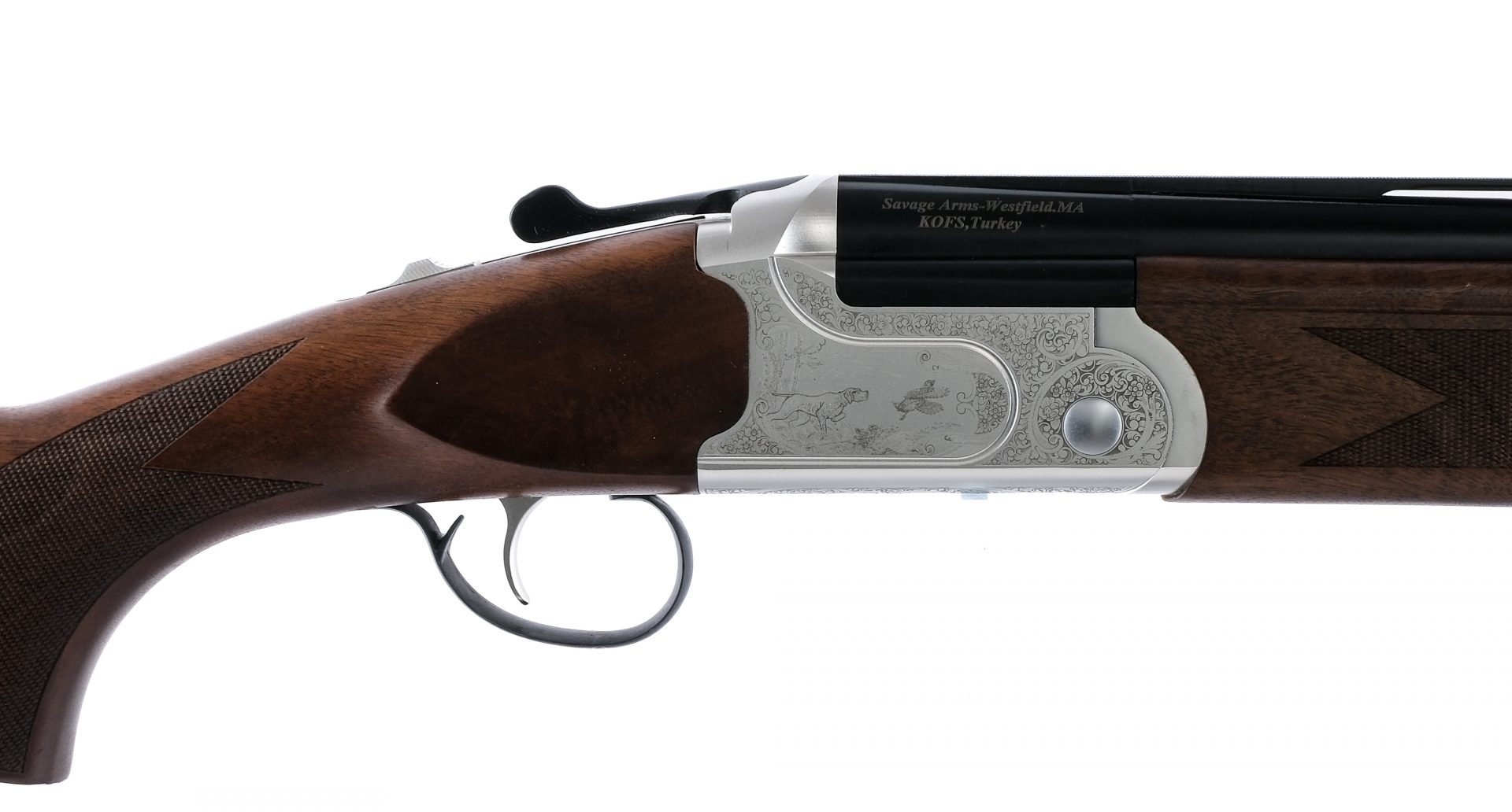 Description Stevens/Savage Model 555 in 12 gauge 2 3/4″-3″ with a four round capacity and a 28″ over under top rib vented barrel. Made in Turkey by Kofs. Top barrel has FULL and bottom IMP MOD removable chokes. Rubber butt pad. Checkered wood stock and front forend. Blued trigger guard, top lever and barrel. Matte silver finished trigger. Matte silver engraved box lock receiver. Rear receiver tang slide button safety/barrel selector. Front fixed brass bead sight. Must ship to a FFL holder. Condition: Very Good/Excellent with light scratches, wood dings and handling wear. Clean smooth bores. Barrel Length: 28″ Serial: 15F10070 Manufacturer: Stevens Savage Arms Gauge: 12 Model: 555 Book# 05876