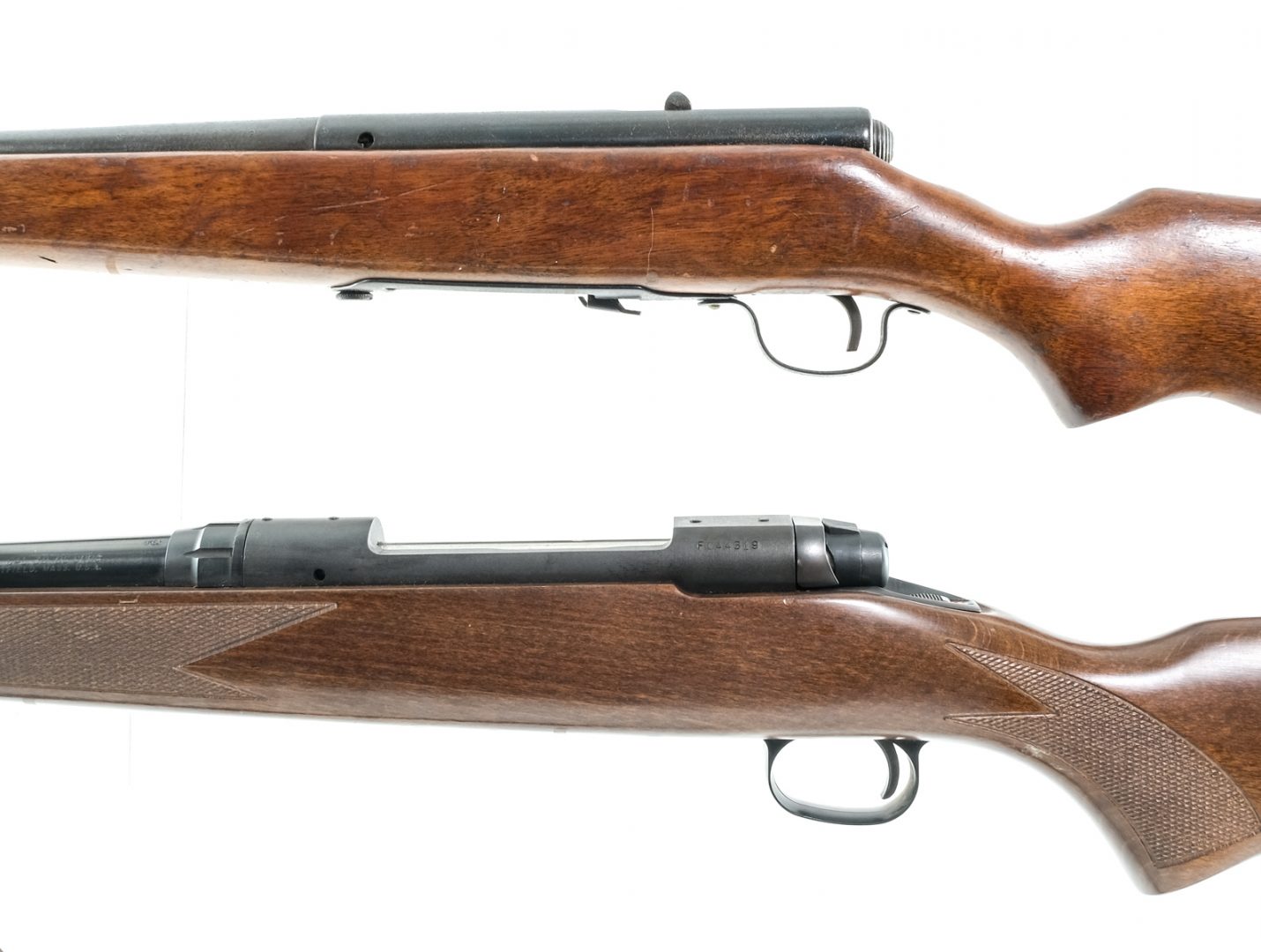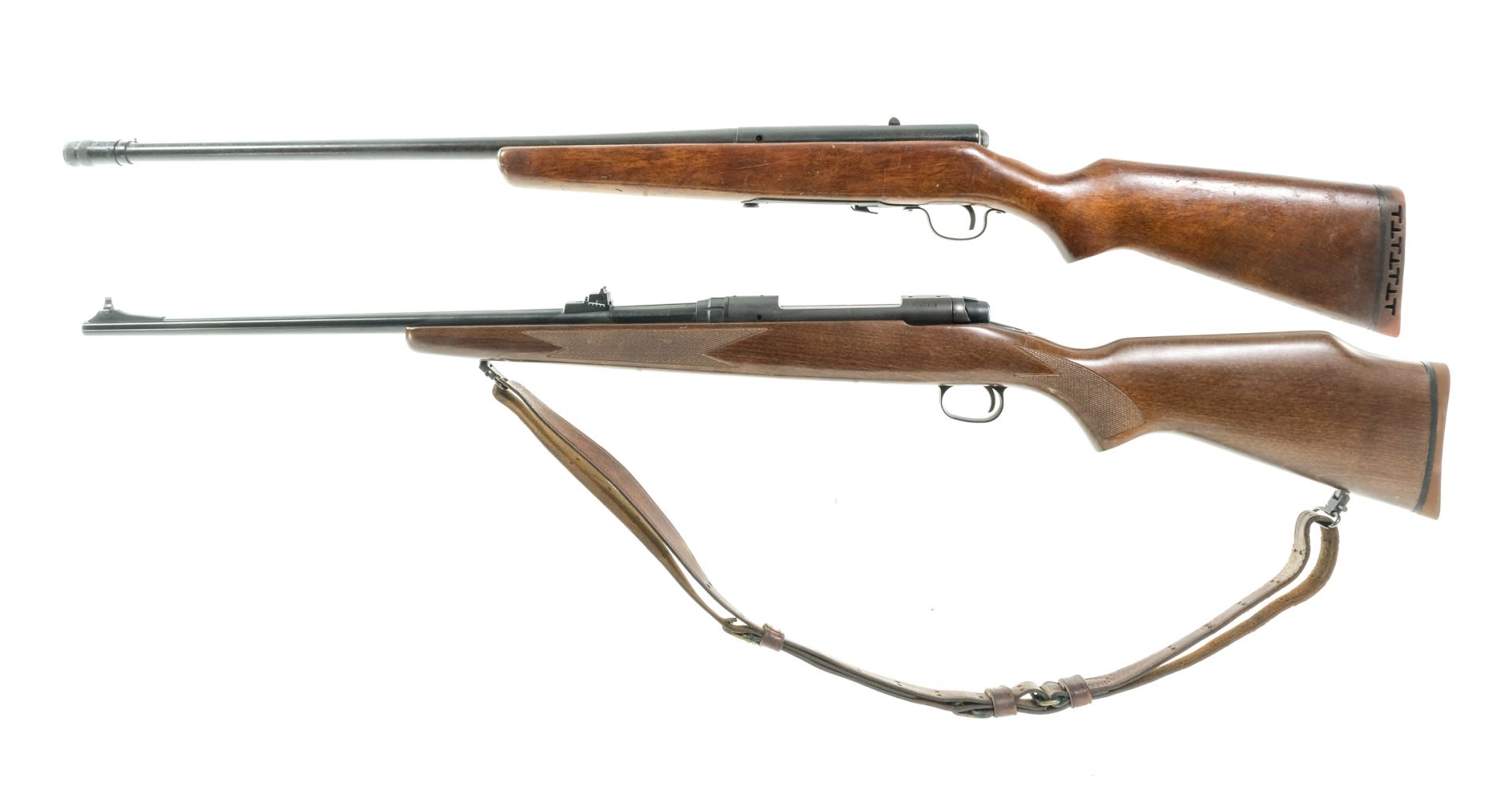 Condition: Good with heavy finish wear/loss and metal oxidation. The Model 110 has a clean rifled bore. The Model 58 has a clean smooth bore.