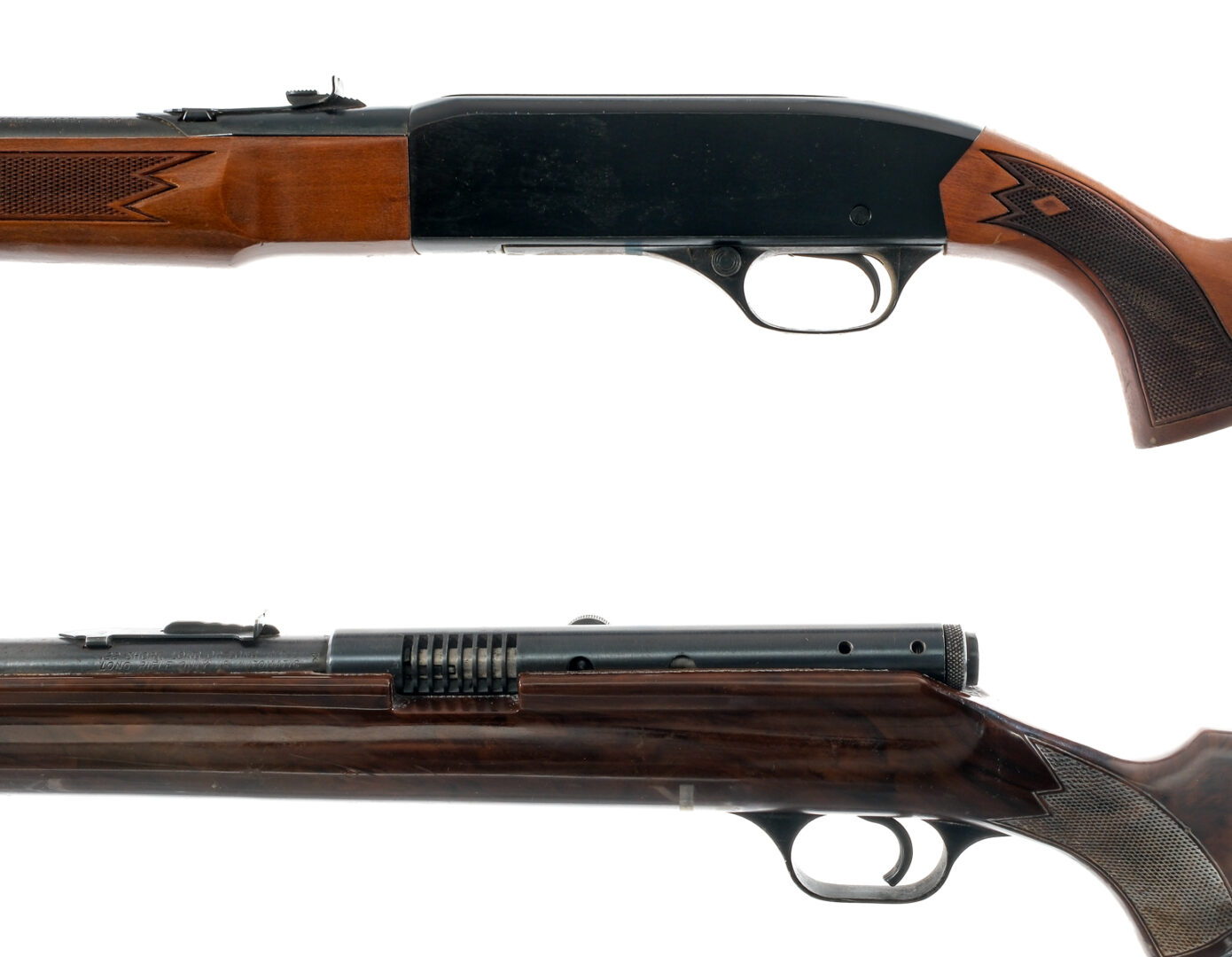 Description Estate lot with two .22 caliber rifles. Winchester Model 290 in .22 Short, Long or Long Rifle with a varied capacity and a 20.5″ barrel. Checkered wood stock. Blued receiver, magazine tube and barrel. Rear adjustable and front fixed blade sight. Stevens/Savage Arms Model 87A in .22 Short, Long or Long Rifle with a varied capacity and a 24″ barrel. Checkered composite stock. Blued receiver, magazine tube and barrel. Rear adjustable and front fixed blade sight. Must ship to a C&R or FFL holder. Condition: Good with scratches, wood dings, finish wear/loss, handling wear and rust. Both rifles have clean rifled bores. Barrel Length: 24″ 20.5″ Serial: NVSN 624303 Manufacturer: Stevens Savage Winchester Caliber: .22 S L LR Model: 290 87A Year-Range 1965-1973 1938-1940 Book# 03228 03231