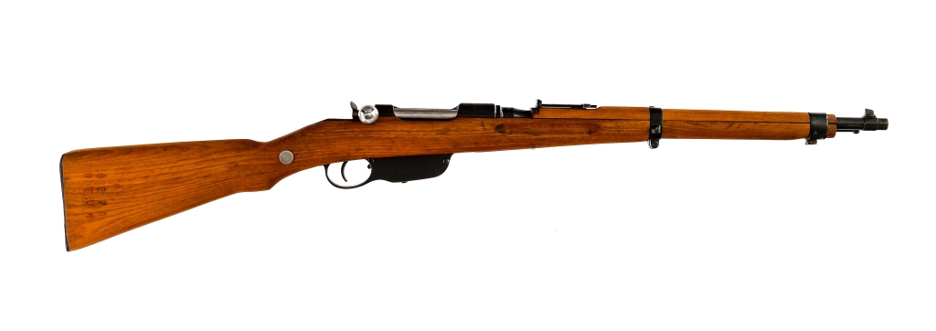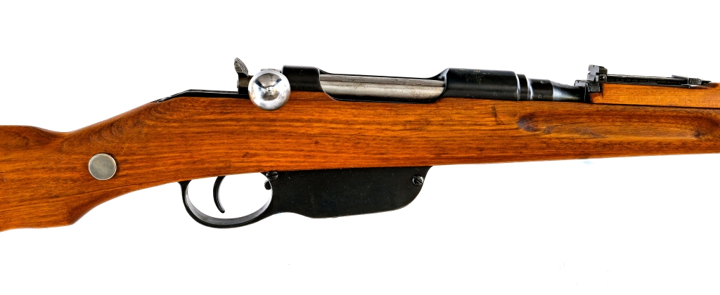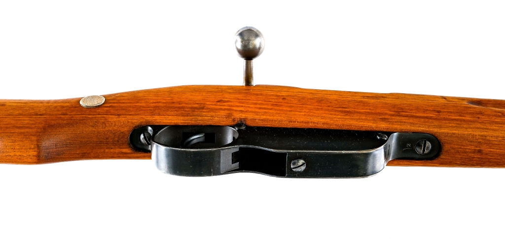 Description Steyr Mannlicher M95 chambered in 8x56mmR fed by a five round En Bloc Clip (not included), with a 20″ barrel. Blued barrel, barrel bands, bayonet lug, receiver, trigger, and trigger guard. Unfinished straight pull bolt. Adjustable rear ladder sight and fixed front blade. Smooth wood top forend and stock with metal butt plate. Matching barrel, receiver, bolt, and stock. The right side of the stock has a matching number and old non matching number with a slash through it. Must ship to a FFL or C&R holder. Condition: Good having been cleaned and restored, with spots of pitting and wear under the finish. Scratches, scuffs, and handling wear. Wear on the internal parts from normal operation. The front sight is painted red. The stock has been sanded and refinished. Spots and frosting of metal oxidation in the bore, strong visible rifling. Barrel Length: 20″ Serial: 6204P Manufacturer: STEYR ARMS (STEYR MANNLIC Caliber: 8x56mmR Model: M95 Carbine Book# 07852