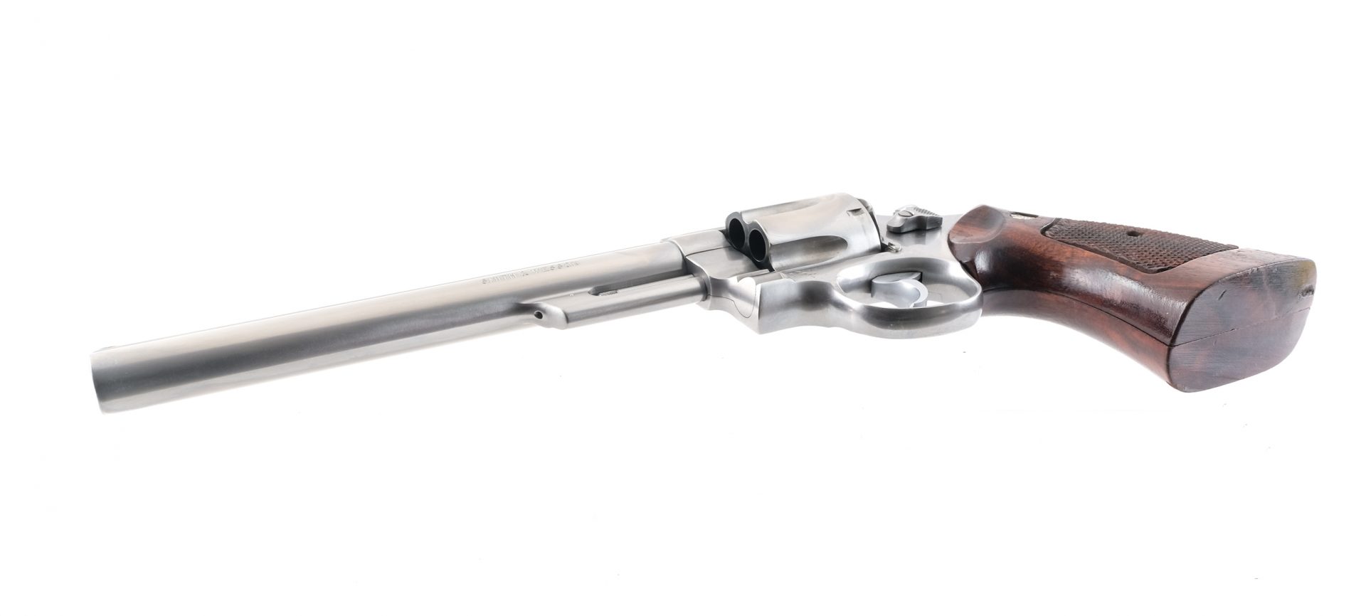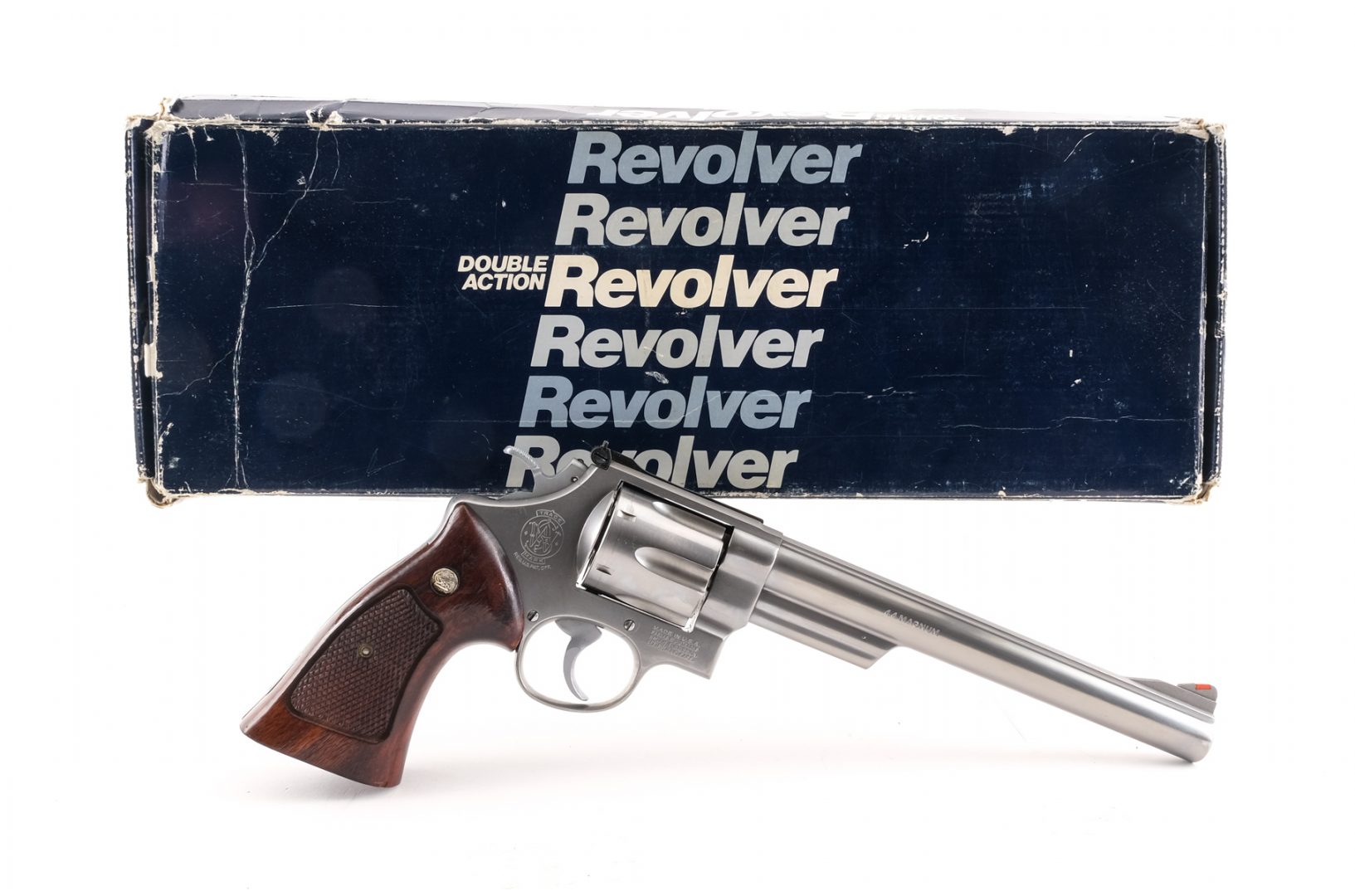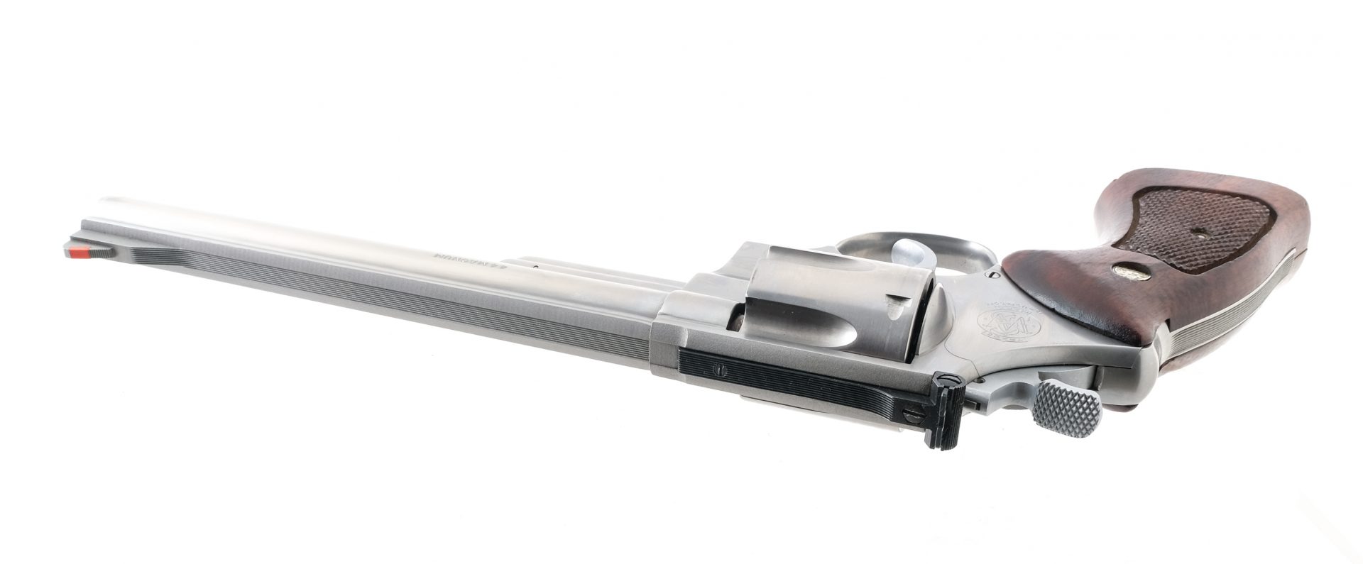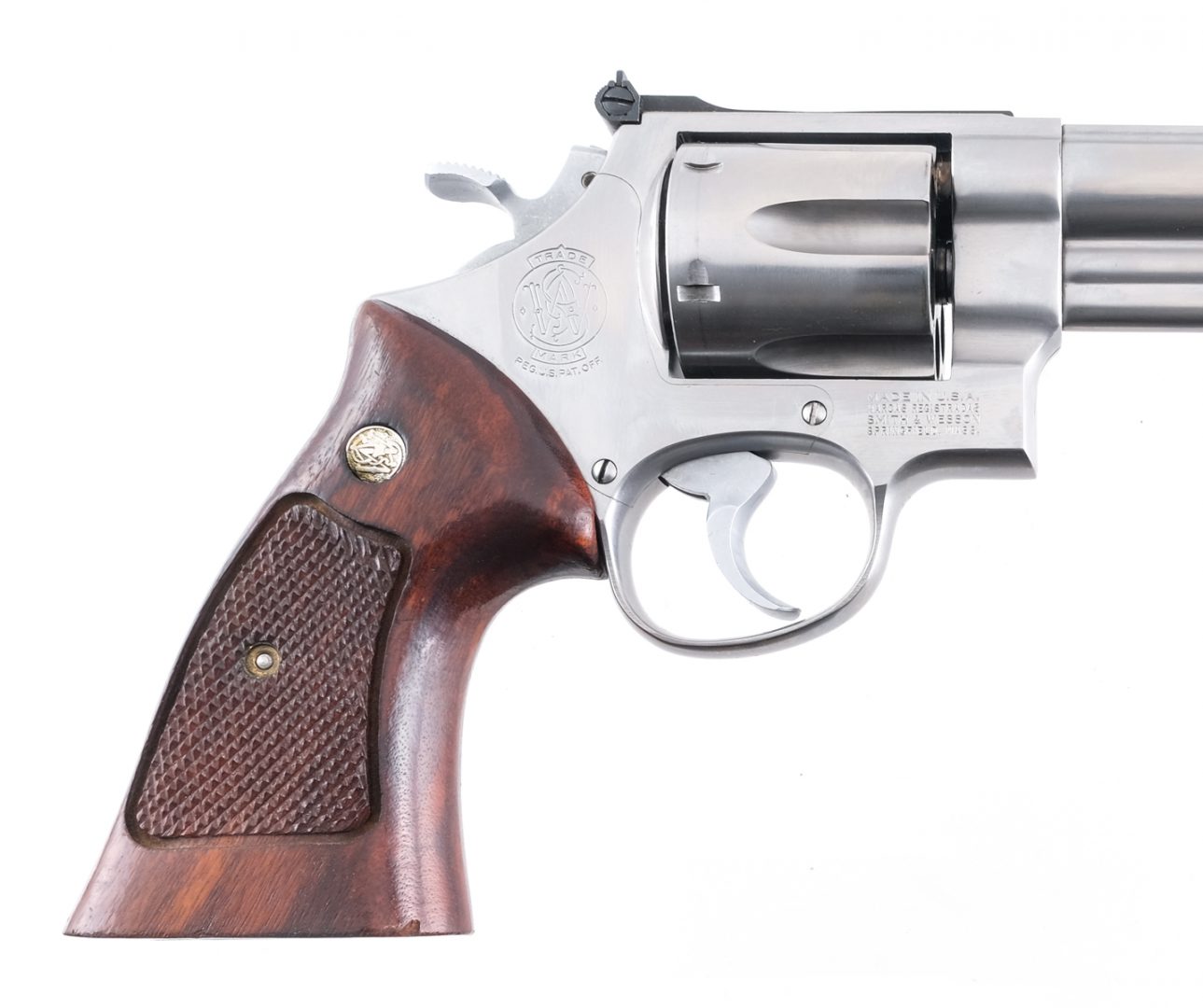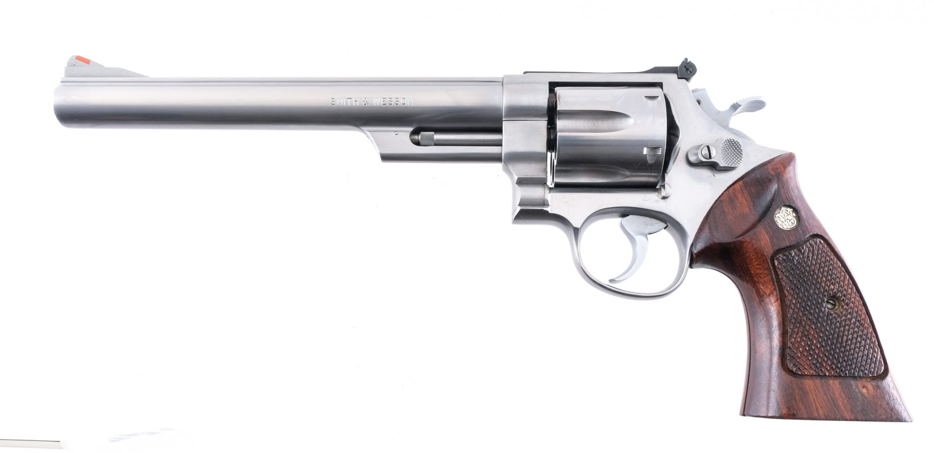 Description Smith & Wesson 629-1 in .44 Magnum with a six round cylinder capacity and a 8 3/8″ barrel. S&W checkered wood grip plates. Polished stainless steel frame, cylinder and barrel. Wide smooth trigger and checkered hammer. Left side of frame located checkered cylinder release button. Rear adjustable and front fixed blade sight. Comes in a factory box with instruction manual. Must ship to a FFL holder.