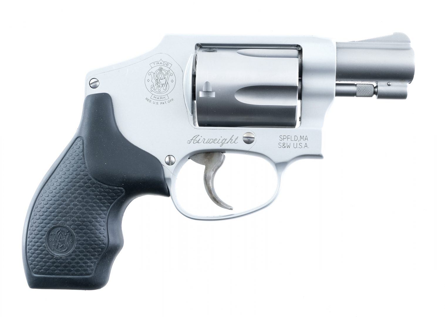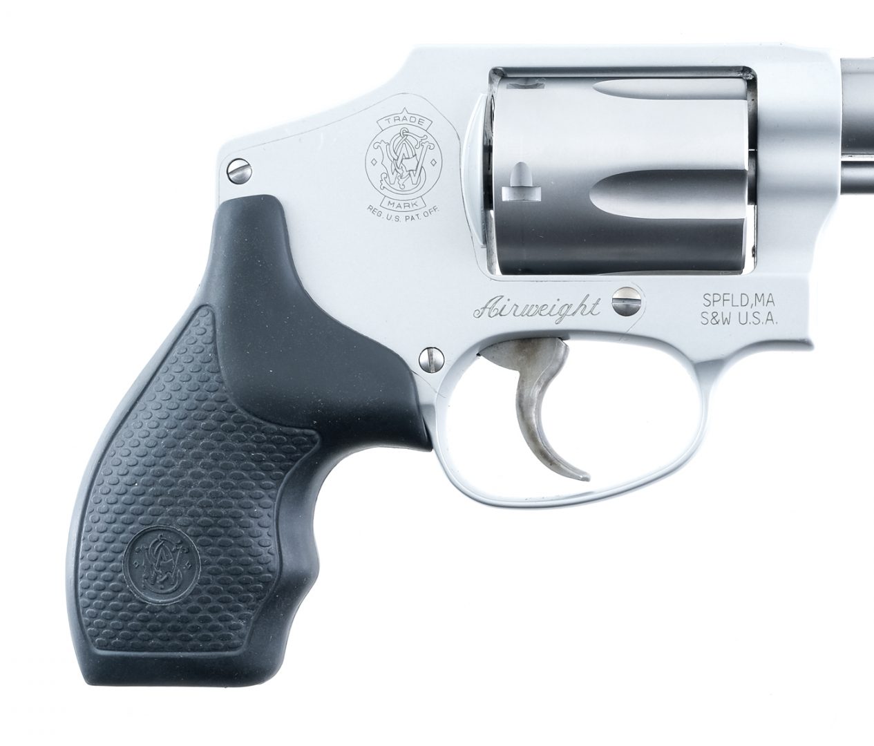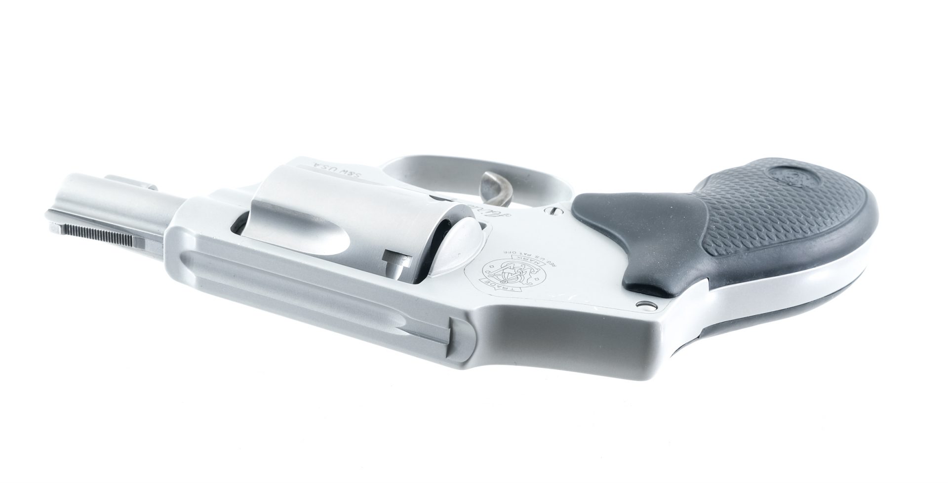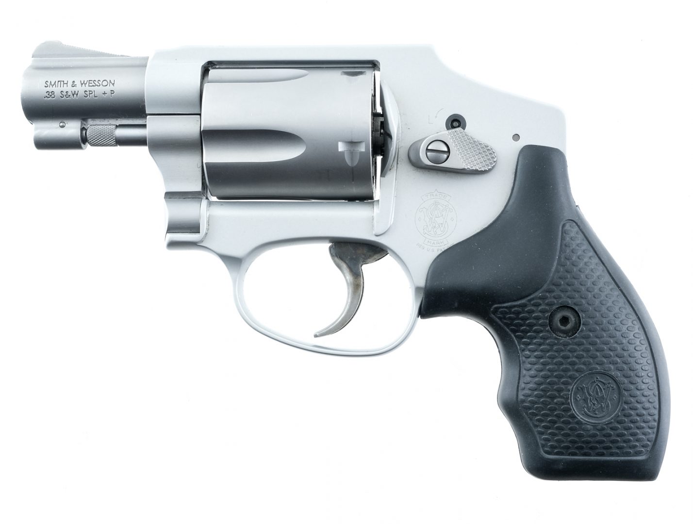Description Smith & Wesson Model 642-2 in .38 Special +P with a five round cylinder capacity and a 2″ barrel. S&W dimpled black rubber grip plates. Satin finished metal frame, cylinder and barrel. Smooth case colored trigger. Left side of frame checkered cylinder release button. Left side of frame above the cylinder release button is the hammer lock system that with the turn of the key provided the hammer locks for safety. Fixed front blade sight. Comes in its factory box with matching serial number and aftermarket Lasermax Centerfire under barrel laser system. Must ship to a FFL holder.
