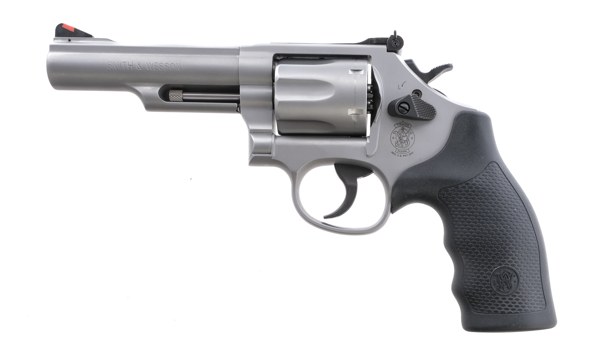 Description Smith & Wesson 66-6 chambered in .357 Magnum with a six-shot cylinder and a 4.25″ 2-peice barrel. Matte silver finished stainless steel K-frame, barrel, and cylinder. Black finished controls. Textured rubber grip with finger grooves. Full top strap. Ball-detent lock up. Rear adjustable and front red ramp iron sights. Must ship to FFL holder. Condition: Very Good/Excellent with light wear from normal handling and use. Turn line on the cylinder. Clean rifled bore. Barrel Length: 4″ Serial: CTT0232 Manufacturer: SMITH & WESSON Caliber: .357 Magnum Model: 66-6