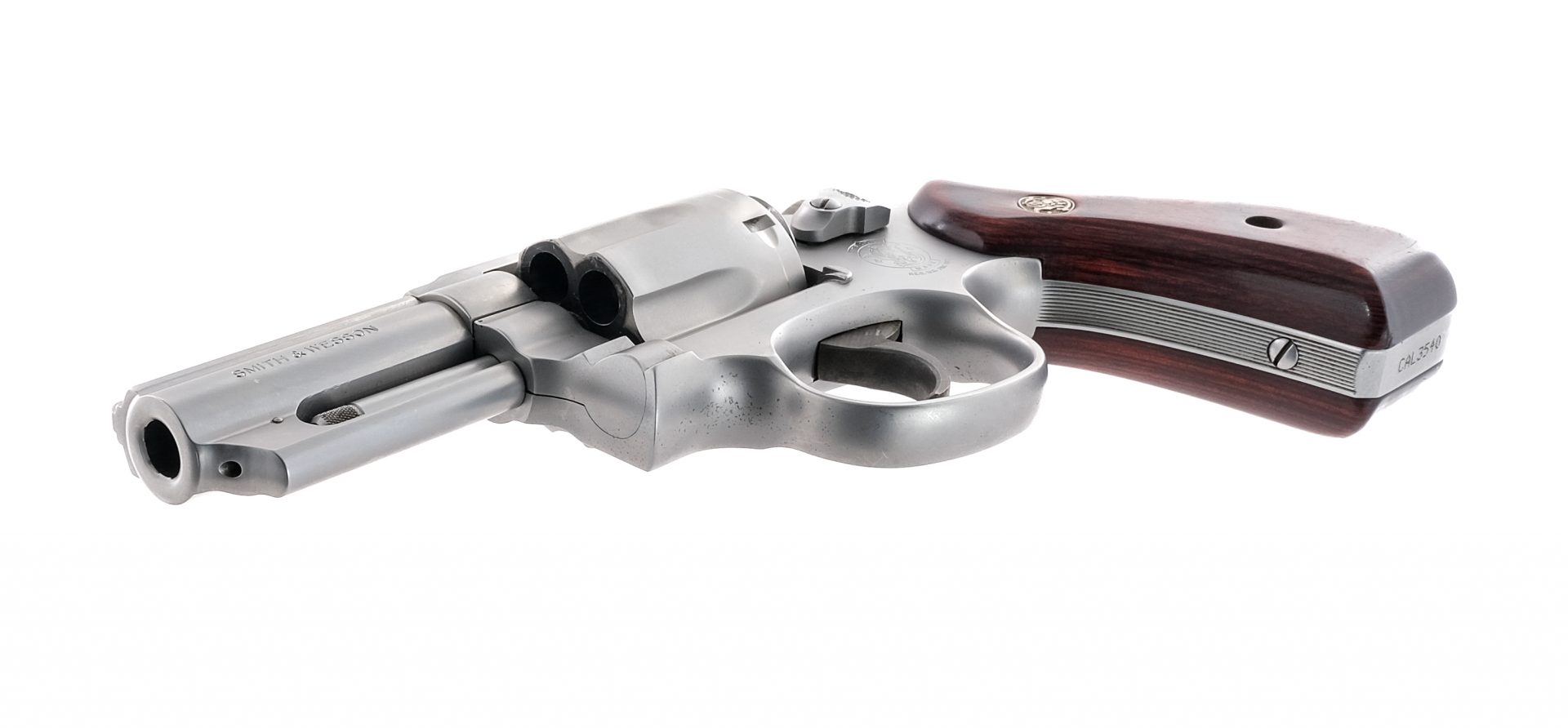 Description Smith & Wesson model 65-5 “Lady Smith” double action revolver chambered in .357 Magnum with a 6 shot capacity and 3″ barrel. 3 screw round-butt K frame. Frosted stainless steel finish. Smooth rosewood laminate grips. Case colored smooth trigger and checkered hammer. Trench rear sight with serrated front ramp. Must ship to FFL holder. Condition: Very Good with some light scratching on the frame, barrel, and grip plates. Cylinder has clear turn line. Little spotting of rust along the top of the frame, bottom of the left and right side of the frame, and the backstrap. Under grips has lots of surface rust. Rifled bore is bright and clean. Barrel Length: 3″ Serial: CAL3540 Manufacturer: SMITH & WESSON Caliber: .357 Magnum Model: 65-5 Year-Range 1991-1997 Book# 01859