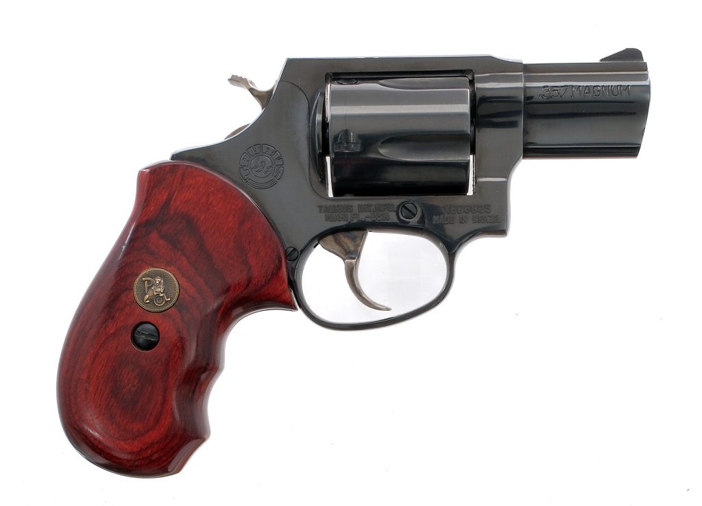 Description Taurus 605 chambered in .357 magnum/.38 special with a five-shot cylinder and a 2″ barrel. Blued barrel, frame, and fluted cylinder. Case colored hammer and trigger. Laminated wood Pachmayr grips with finger grooves. Fixed front blade sight and rear trench. Must ship to a FFL holder. Condition: Very Good with scratches, marks, and regular handling wear. Light cylinder drag line and other operational wear. Clean rifled bore. Barrel Length: 2″ Serial: XE86825 Manufacturer: TAURUS INTERNATIONAL MFG. Caliber: .357 Magnum Model: 605 Book# 02904