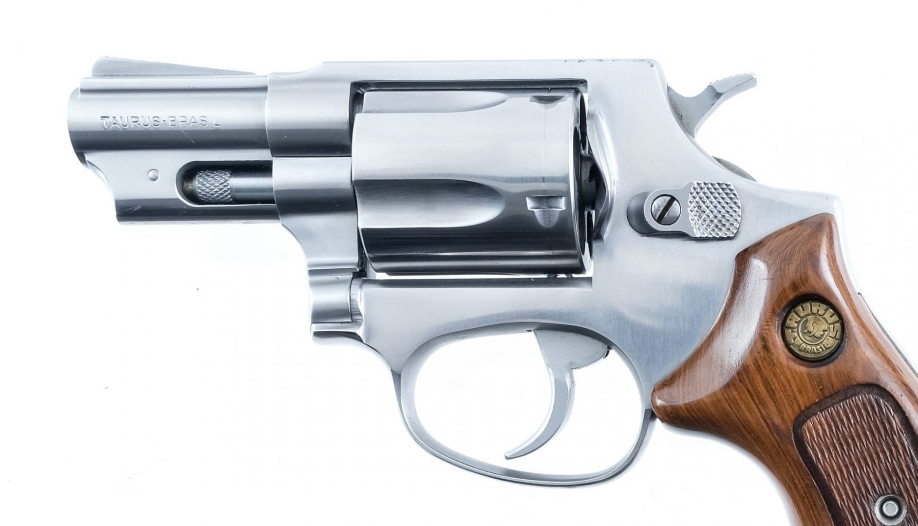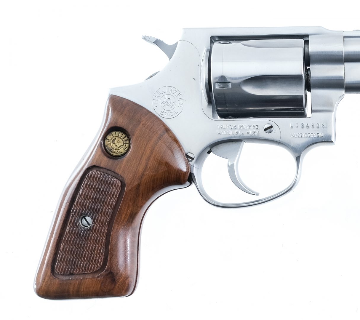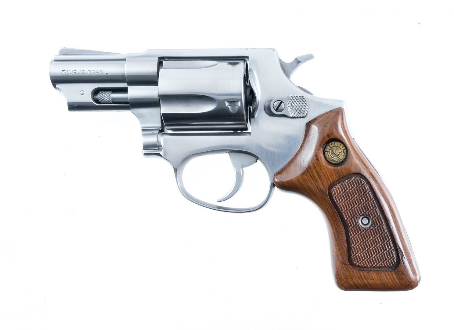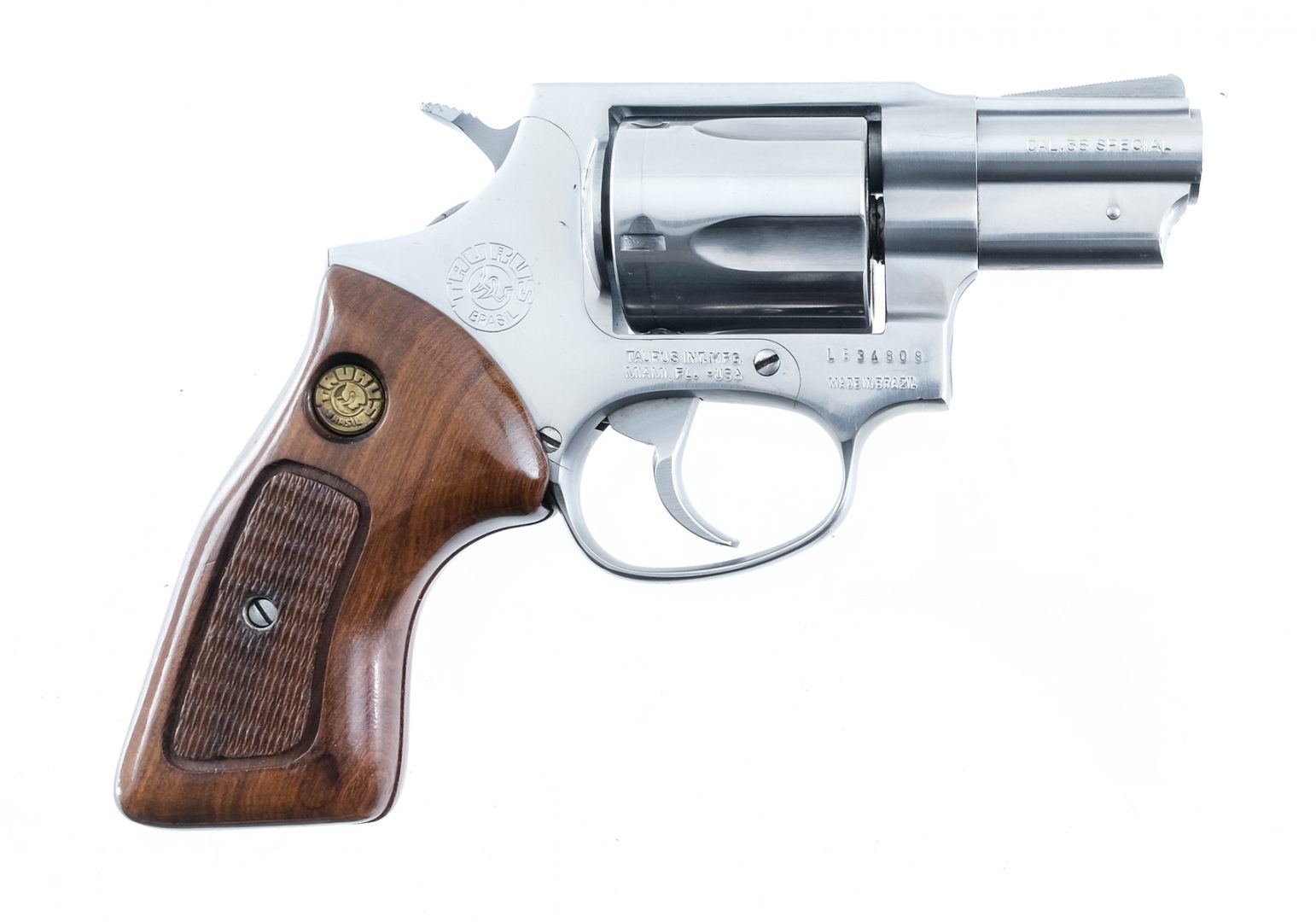 Description Taurus Model 85 in .38 Special with a five round cylinder capacity with a 2″ barrel. Taurus checkered wood grip plates. Stainless steel frame, cylinder and barrel. Smooth trigger and checkered hammer. Left side of frame checkered cylinder release. Front fixed blade sight. Comes with an instruction manual and two aftermarket grips. One is wooden and unbranded. The other is a checkered rubber Pachmayr. Must ship to a FFL holder.