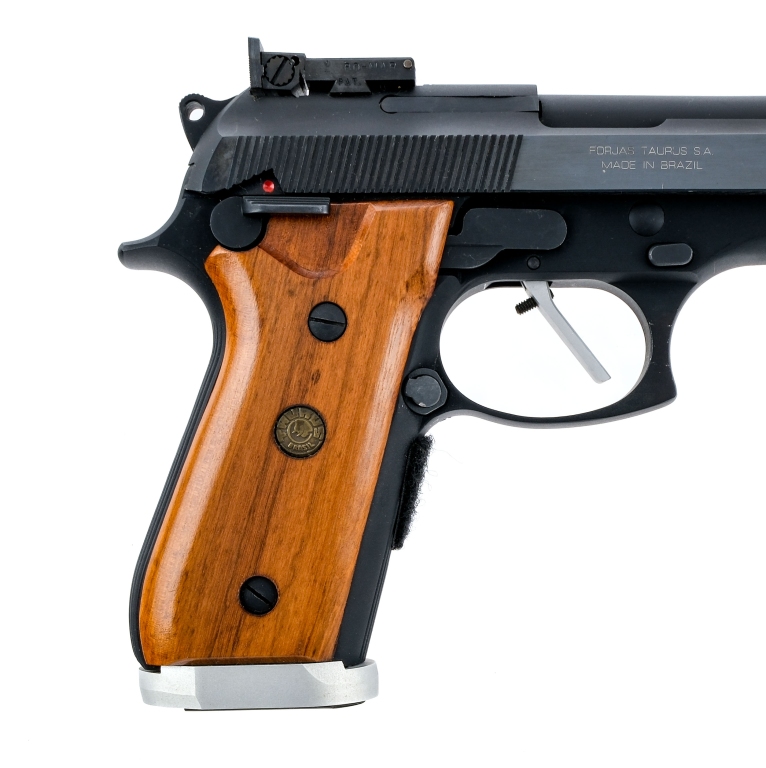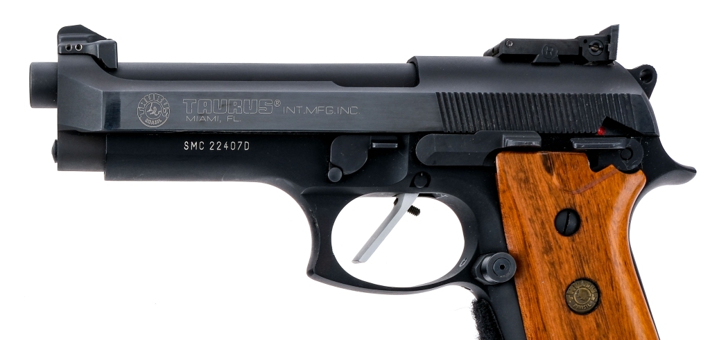 Description Taurus PT 100 AF chambered in .40 Smith & Wesson with one, eleven round magazine and a 4.7″ barrel. Matte finished alloy frame with smooth wood Taurus grips. Double/single action flat faced trigger. Enlarged push button magazine release. Ambidextrious frame mounted de-cocker/thumb safety. Blued barrel and serrated slide. Adjustable BO-MAR rear sight and fixed front blade. Comes in a Taurus box with one magazine. Must ship to a FFL hold. Check local laws regarding “High Capacity” magazines BEFORE bidding. Condition: Very Good with light scratches, sharp edge wear, and cosmetic handling wear. Light internal wear from operation. Clean rifled bore. Barrel Length: 4.7″ Serial: SMC22407D Manufacturer: TAURUS INTERNATIONAL MFG. Caliber: .40 Smith & Wesson Model: PT 100 AF Book# 07473