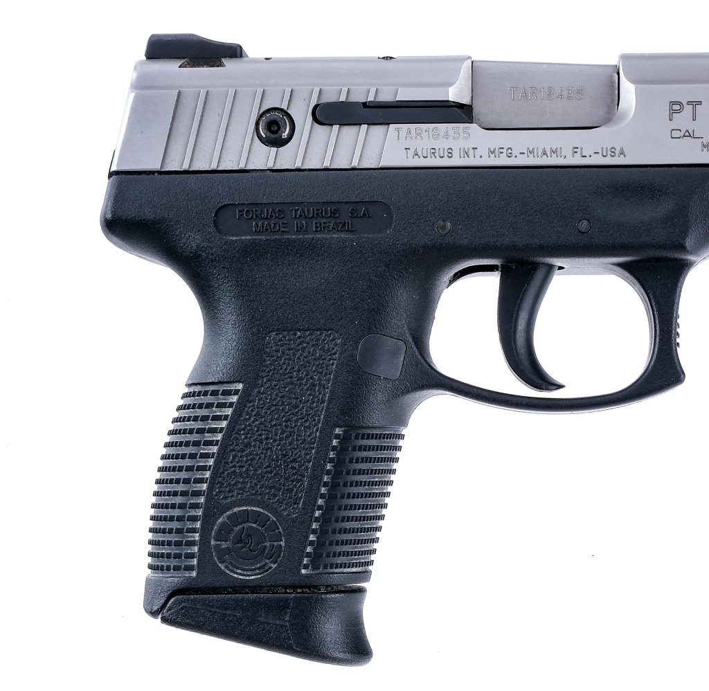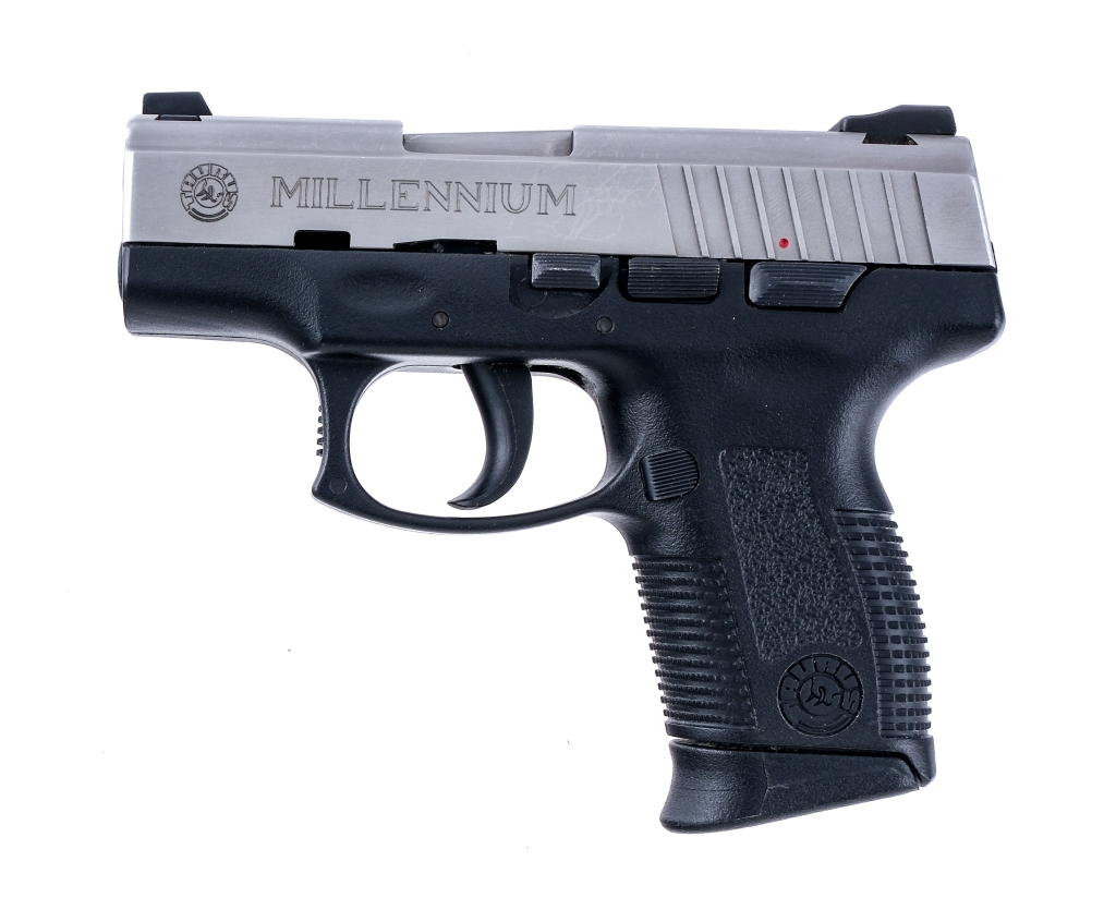 Description Taurus Millennium PT-111 Pro Two-Tone in 9mm with one, twelve round removable magazine and a 3.25″ barrel. Textured grip on composite frame. Untextured composite trigger. Serrated metal slide and barrel. Left side of frame serrated take-down lever, slide release and safety switch. Lower left side of frame serrated magazine release. Right side of slide located Taurus safety lock, need key. Front and rear fixed white DOT sights. Check Local/State Laws on HIGH CAPACITY MAGAZINES before bidding. Must ship to a FFL holder. Condition: Very Good with light scuffs and handling wear. Clean rifled bore. Barrel Length: 3.25″ Serial: TAR18435 Manufacturer: Taurus Caliber: 9mm Model: PT 111 Pro Book# 08085