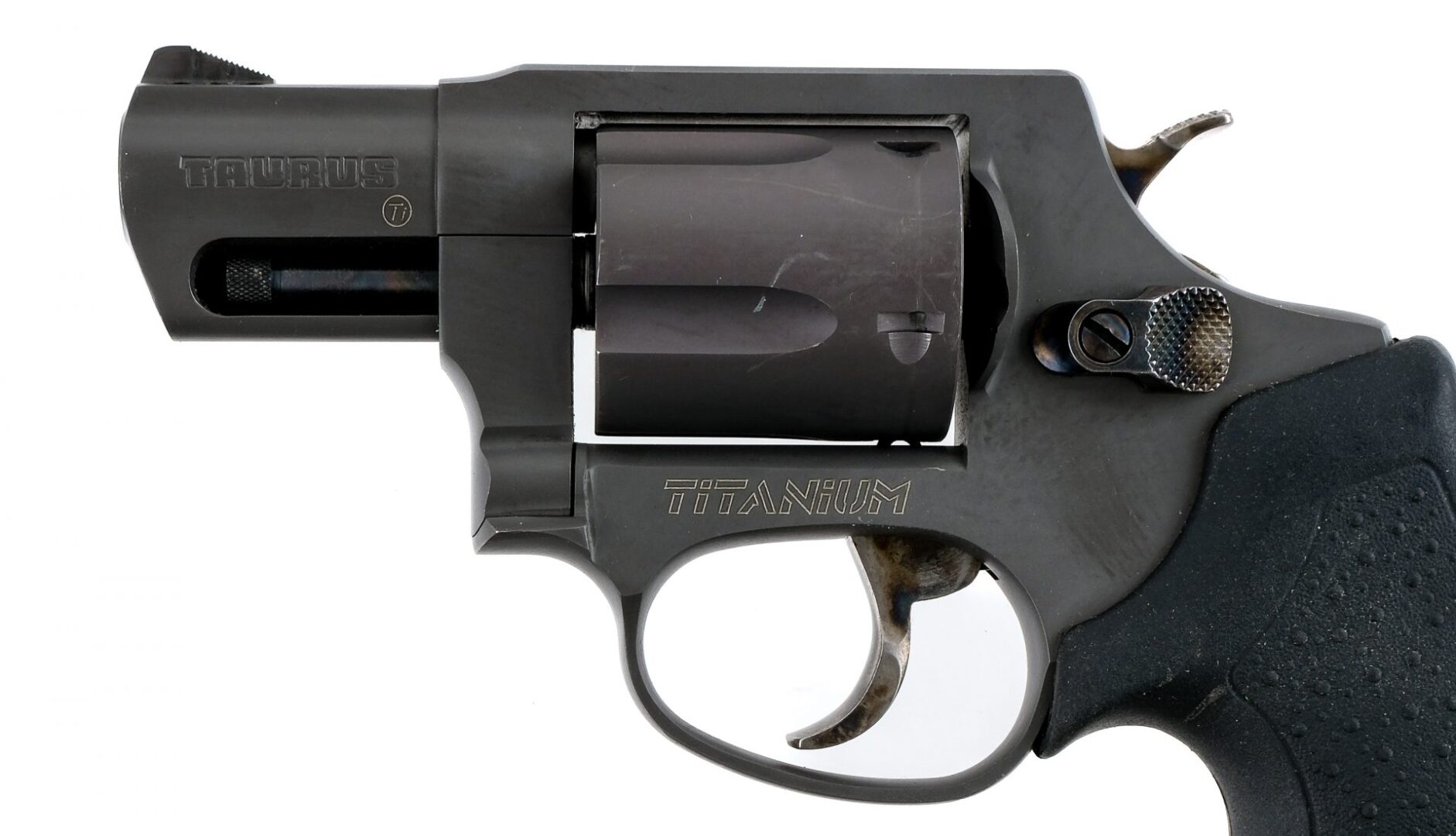 Description Taurus Titanium in .38 Special with a five round capacity and a 2″ ported barrel. Dimpled rubber grip. Matte grey frame, cylinder and barrel. Case colored trigger and checkered hammer. Left side of frame checkered cylinder release. Rear hammer lock safety with keys include. Comes in its factory hard case with matching serial number. Must ship to a FFL holder. Condition: Very Good with light scuffs and handling wear. Clean rifled bore. Barrel Length: 2″ Serial: SJ87936 Manufacturer: TAURUS INTERNATIONAL MFG. Caliber: .38 Special Model: Titanium Gray Book# 05341