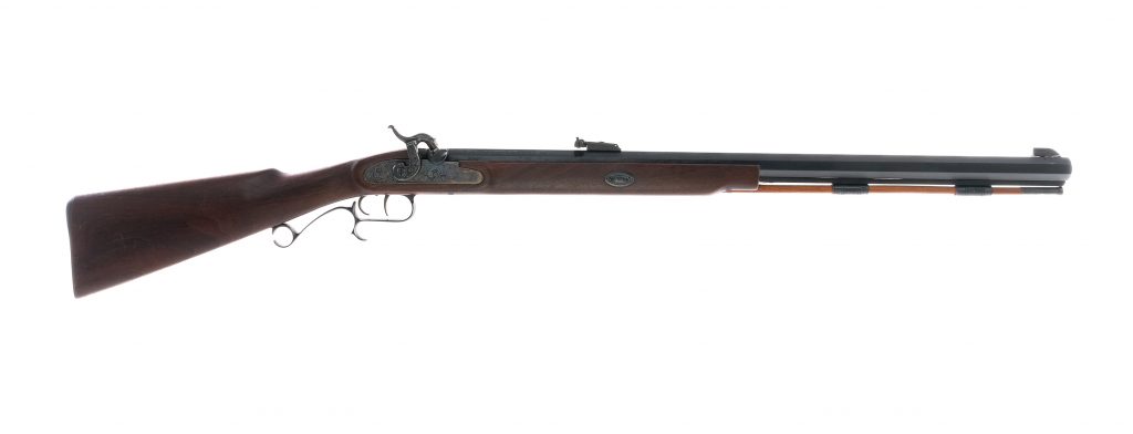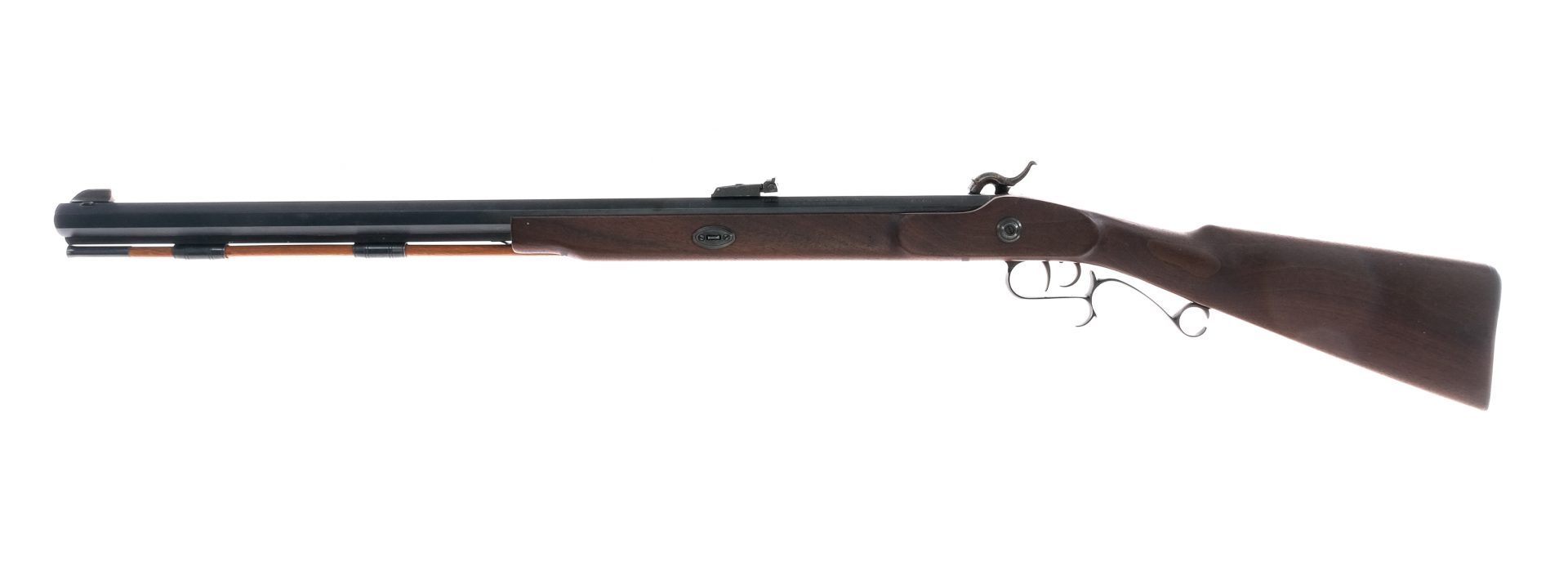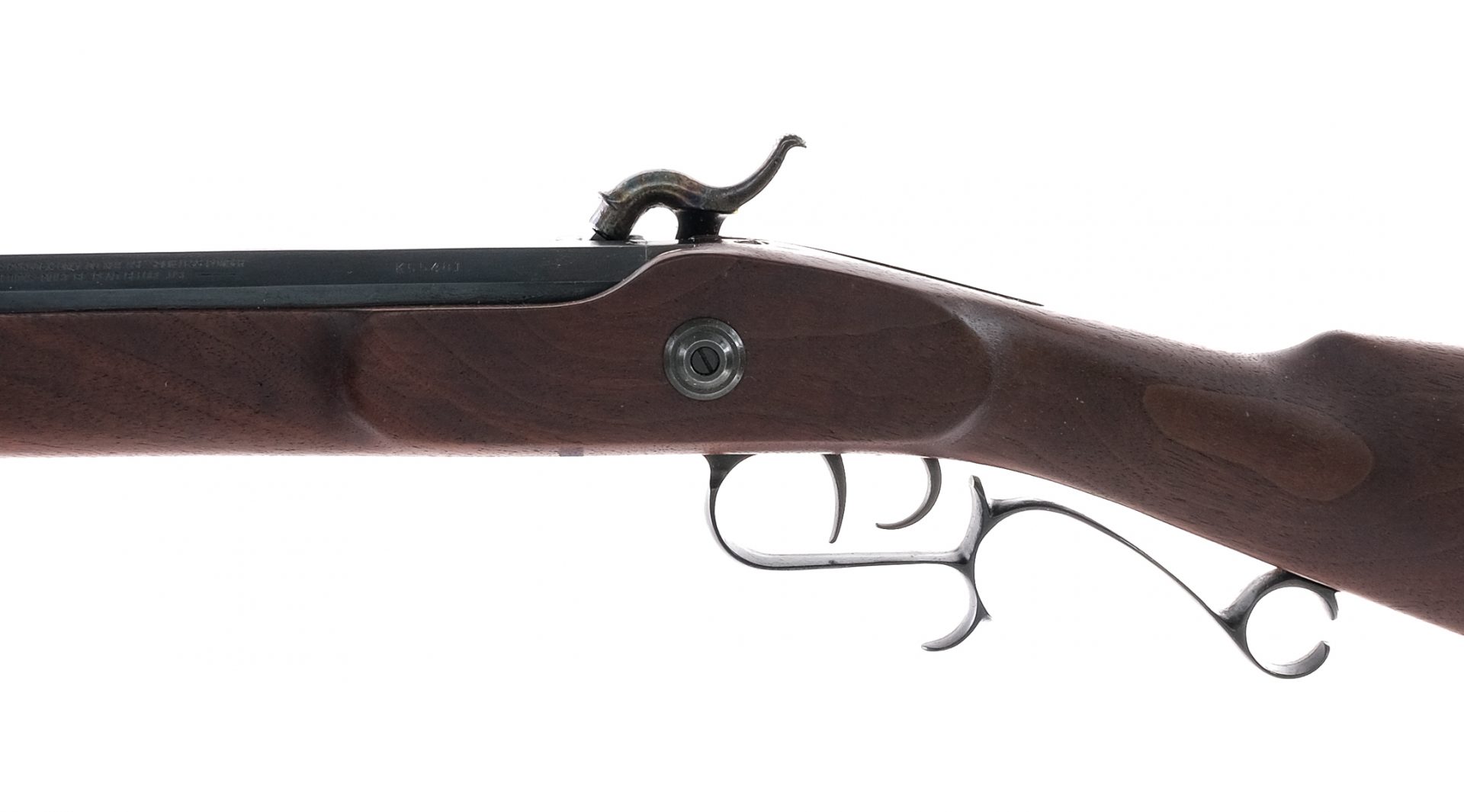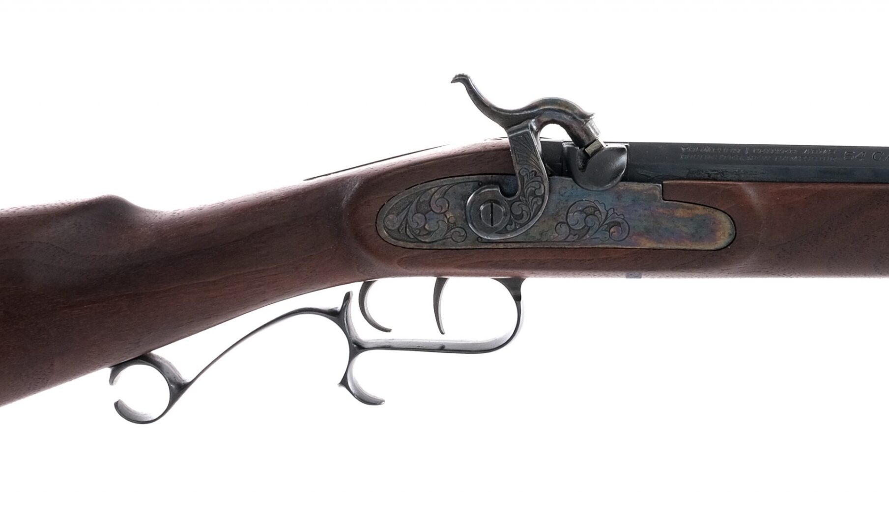 Description Thompson Center Renegade chambered in .54 Caliber with a 27″ octagonal barrel with ram rod. Blued barrel, ram rod rings, trigger guard, and double triggers. Case colored engraved hammer and lock. Smooth wood straight stock with blued metal butt plate. Adjustable rear sight and fixed front blade. Black powder ships directly to buyers home. Condition: Good/Very Good with light scratches and handling wear. Light scratches, scuffs, and dings in the wood. Clean rifled bore. Barrel Length: 27″ Serial: K55481 Manufacturer: THOMPSON/CENTER ARMS CO., Caliber: .54 Caliber Model: Renegade