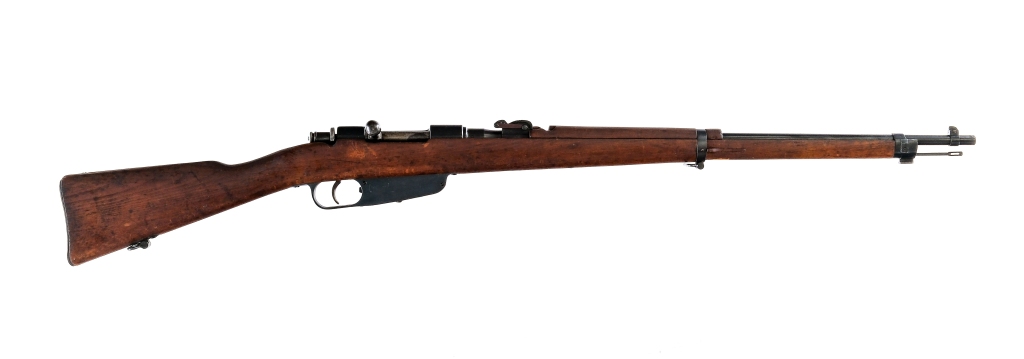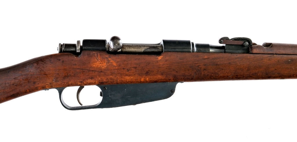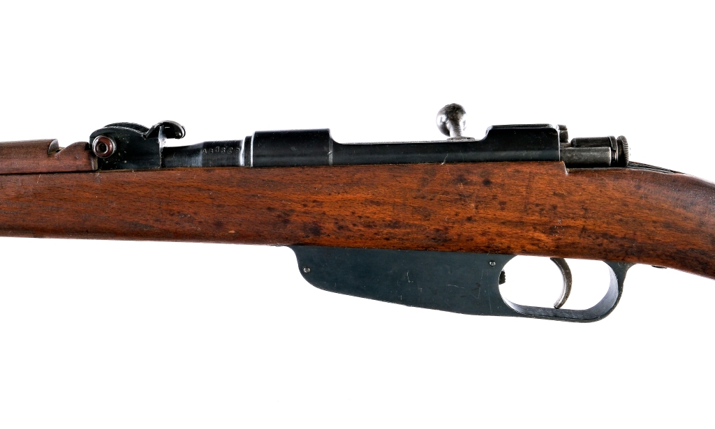 Description Terni Carcano Model 91/42 in 6.5x52mm with a five round capacity and a 27″ barrel. Blued metal butt plate. Smooth wood stock and front forend. Blued trigger guard, receiver and barrel. Unfinished trigger and bolt. Rear bolt safety switch. Under barrel fixed bayonet lug and removable cleaning rod. Rear flip up adjustable and front fixed blade sight. Metal loops for mounting a shoulder sling. Non matching serial number on the bolt. Matching serial number on the receiver and wood stock. Must ship to a C&R or FFL holder. Condition: Good with light scratches, wood dings and light rust. Clean rifled bore. Barrel Length: 27″ Serial: AB1326 Manufacturer: Terni Caliber: 6.5x52mm Model: M1891/42 Book# 08106