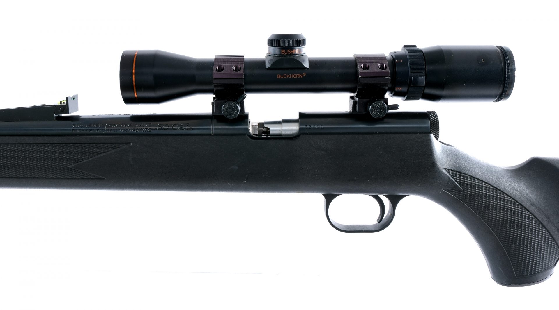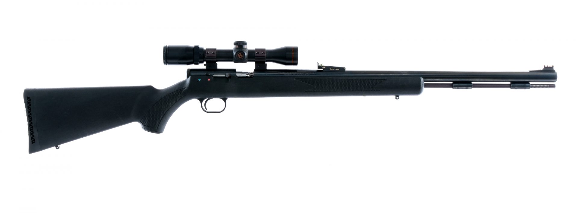Description Thompson Center Black Diamond in .50 caliber with a single round capacity and a 23.5″ barrel. Serrated rubber butt pad. Checkered black composite stock and front forend. Blued trigger, receiver and barrel. Rear right side of receiver safety. Right side charging handle. Under barrel removable cleaning/ramrod. Rear adjustable fiber optic and front fixed fiber optic sight. Metal eyelets for mounting a shoulder sling. Mounted with a Bushnell Buckhorn scope with clear glass and a duplex reticle. Black Powder Muzzle Loading Rifle, No FFL required and ships to MOST buyers homes. Condition: Very Good/Excellent with light scuffs and handling wear. Clean rifled bore. Barrel Length: 23.5″ Serial: 52660 Manufacturer: Thompson Center Caliber: .50 Model: Black Diamond