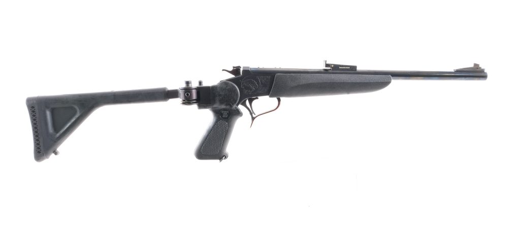 Description Thomson Center Contender in .223 with a 16″ Super 16 barrel and a single shot capacity. The Contender is mounted with a “Choate Tool Corp” closable stock with a rubber butt pad. Smooth synthetic forend. Rear adjustable and fixed front sight blade. Barrel is drilled and tapped. Must ship to FFL holder. Condition: Very good/Excellent with light handling wear and clean rifled bore. Barrel Length: 16″ Serial: 266257 Manufacturer: THOMPSON/CENTER ARMS CO., Caliber: .223 Remington Model: Contender/Super 16