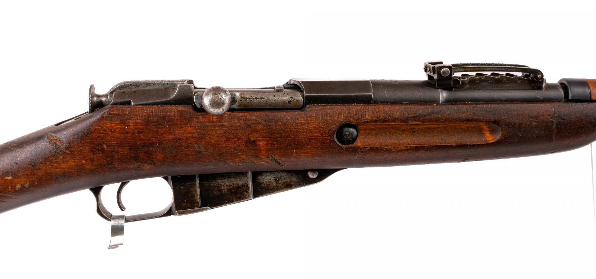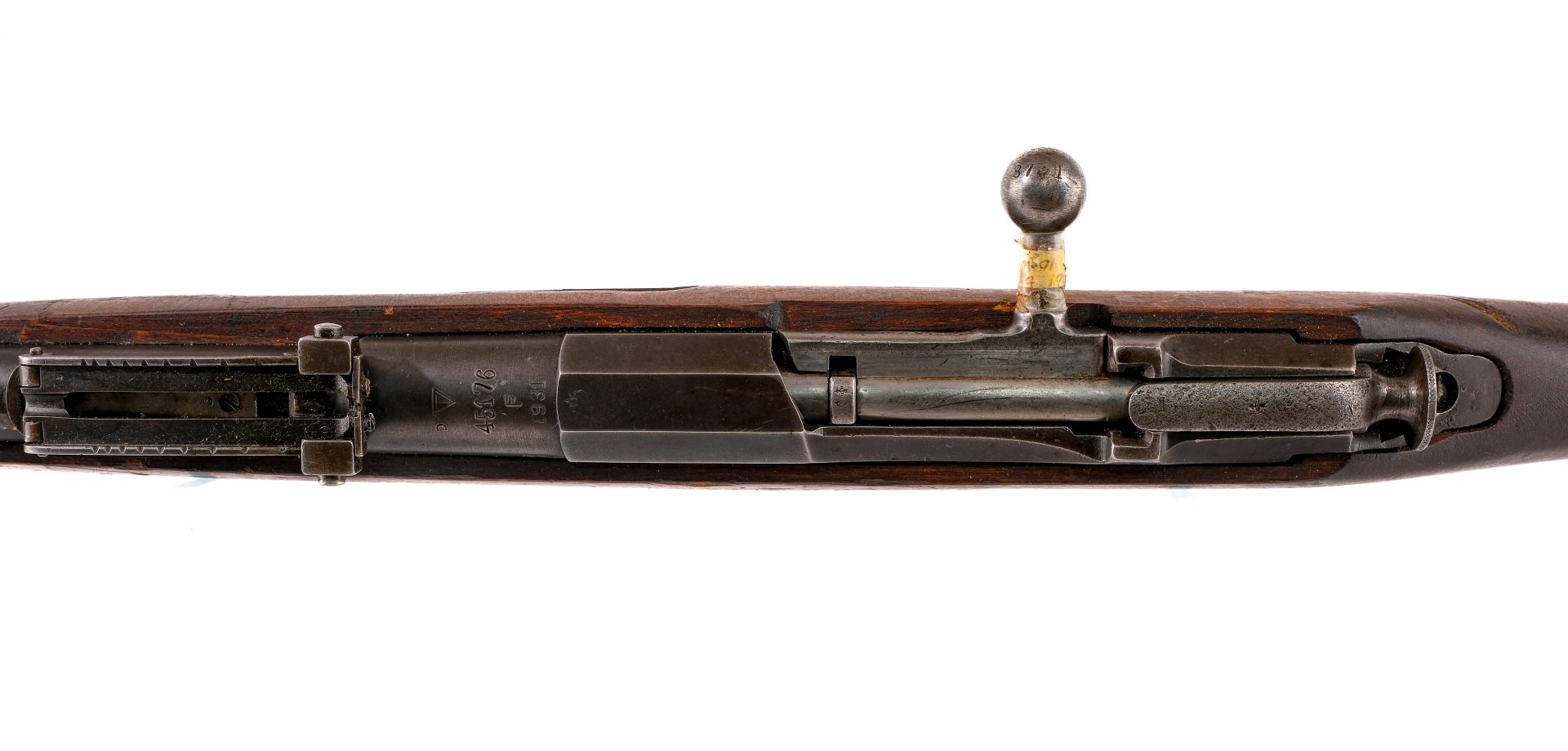 Description Finnish Tikka M27 Mosin Nagant chambered in 7.62x54r with a five round integral magazine and a 27″ barrel. Manufactured in 1931 and imported by Century Arms, marked on the barrel. Blued barrel, barrel bands, and end caps. Adjustable curved rear ladder sight and protected front blade sight. Blued hexagon receiver with unfinished bolt and twist knob bolt safety. Smooth wood forend and pistol grip stock with metal butt plate. Forend finger stock splice. Front and rear sling swivels. The stock, top forend, and barrel bands appear to be incorrect for a M27 and is poorly fitted. Serial number matching shank and receiver. The barrel shank is stamped with Tikka stamp, [SA] property stamp, and “45176 F 1931”. Must ship to a FFL or C&R holder. Condition: Good with varying scratches, scuffs, and finish wear from handling/storage. Spots of metal oxidation/pitting. Heavy pitting on the bolt. Spots of finish patina/loss (in the white). Some scratches, scuffs, and dings on the wood. The top forend is not fitted correctly and is loose. Bright bore with strong rifling, shows frosting of metal oxidation. Barrel Length: 27″ Serial: 45176 Manufacturer: TIKKA Year: 1931 Caliber: 7.62 x 54R Model: M27 Mosin Nagant Book# 03979