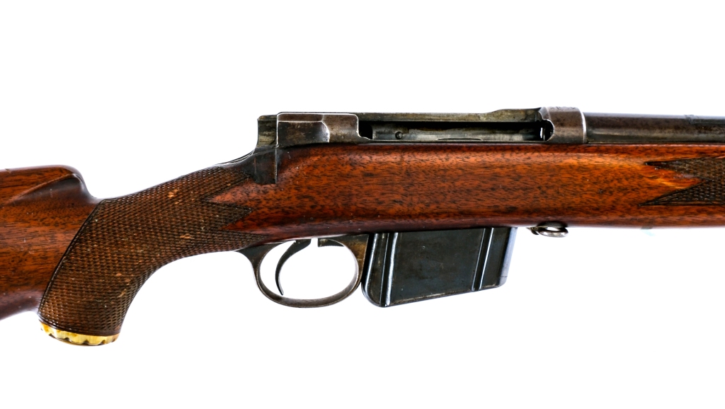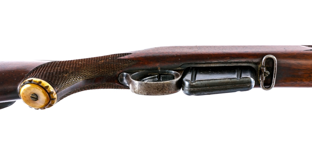 Description Antique United States Navy Contract Remington Lee model 1879 chambered in .45-70 Government with one, five round removable magazine and a 26.5″ barrel. Serial number 51915 and Navy serial number 2753. Patinated blued finish. Checkered trigger guard magazine release button. Sporterized with replaced checkered Monte Carlo style stock. MISSING the rear sight and bolt. The top of the receiver ring is marked “U. S. N” over Anchor over “No 2753” over “W. W. K.”. The top of the receiver is marked “REMINGTON ARMS COMPANY, ILION, N Y, U.S.A. SOLE MANUFACTURERS AND AGENTS”. The left side of the receiver is marked “PATENTED NOV.4TH 1879”. Antique ships directly to buyers home in MOST states. Condition: Fair/Good mainly due to having a replaced stock and missing important parts. Scratches, sharp edge wear, and general cosmetic handling wear. Normal internal wear from operation. Spots of patina and metal oxidation on most of the metal parts. Scratches and dings on the wood. Chip of wood missing on the top of the tang. Bright and clean bore with strong rifling. Barrel Length: 26.5″ Serial: 51915, 2753 Manufacturer: REMINGTON ARMS COMPANY Caliber: .45-70 Government Model: Lee 1879