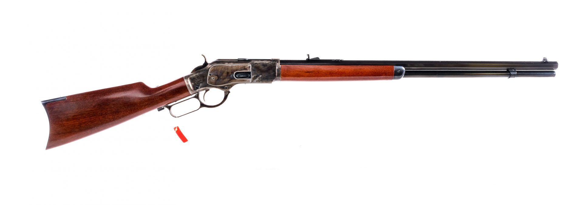 Description High Grade and High Condition Uberti 1873 in .45 Long Colt with a ten round capacity and a 24″ octagon barrel. Blued contoured butt plate. Premium wood stock and front forend. Case colored hand lever, trigger, checkered hammer and receiver. Blued barrel and magazine tube. Right side of receiver loading gate. Underside of receiver tang located lever lock. Rear adjustable and front fixed blade sight. Comes in its factory box with matching written serial number and instruction manual. Must ship to a FFL holder. Condition: Like New with light handling wear. Clean rifled bore. From the personal collection of Maria Uberti, daughter of founder Aldo Uberti. This collection is comprised of exhibition guns, salesman’s samples, prototypes, and experimental designs. Many of the guns in the Uberti family collection were screen used in movies and television from the 1950’s through the early 2000’s. Accompanied by a hand-signed letter of authenticity from Lisa Keller, Former Manager of Uberti USA, Lakeville CT. Barrel Length: 24″ Serial: 91383 Manufacturer: Uberti Year: 2002 Caliber: .45 LC Model: 1873 Book# 00549
