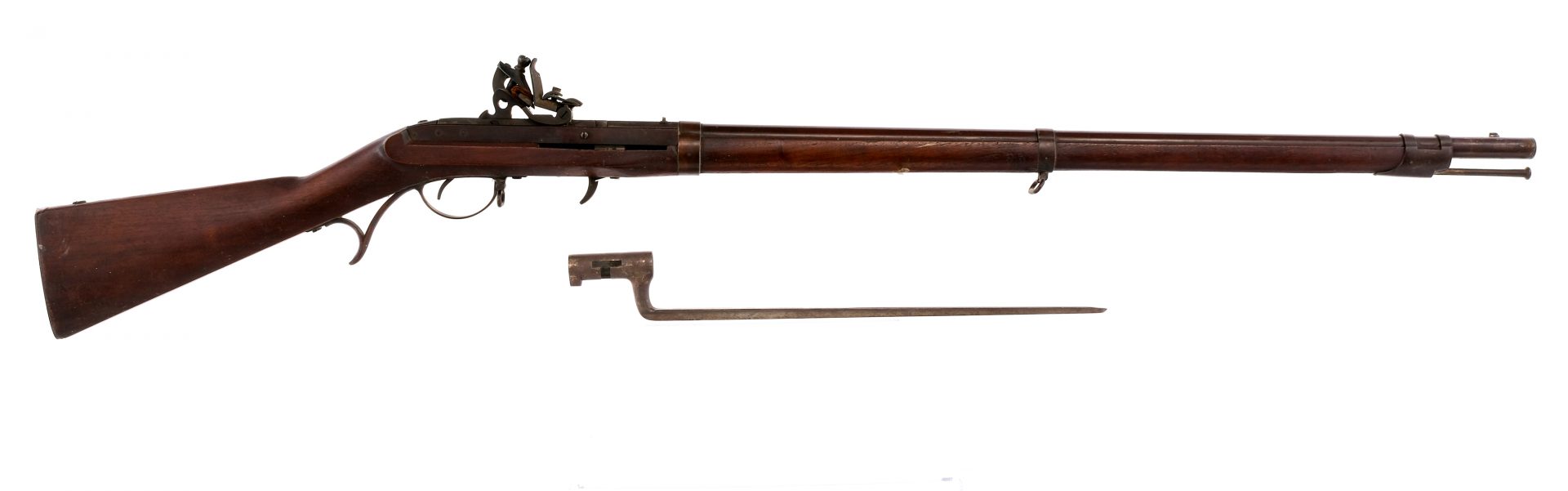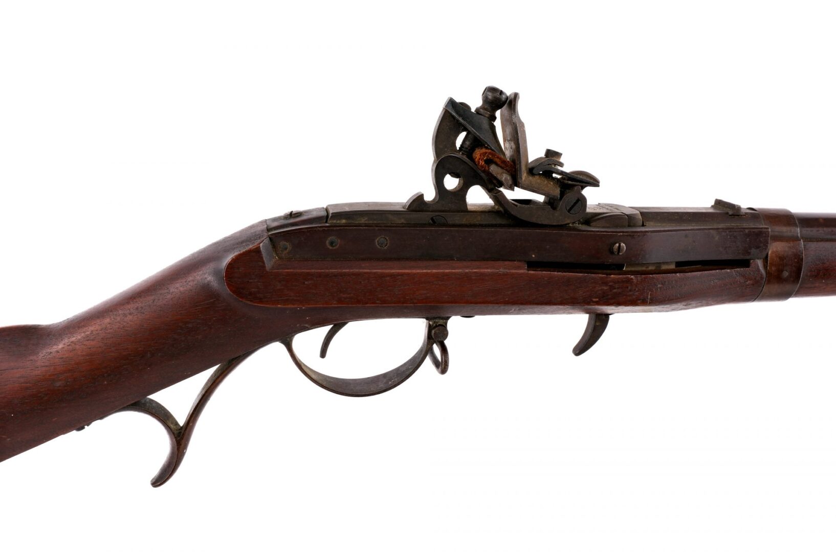 Description U.S. Harpers Ferry Breech Loading Model 1819 Hall Rifle in .525″ Ball with a single round capacity and a 32.5″ barrel. Made at Harpers Ferry by J.H Hall and dated on the top of breech 1838. The Hall Rifle was the first breech-loading design that was adopted by any Nations Army. These Models were used in the Mexican American War and also saw limited service in the American Civil War. Finish worn butt plate. Smooth one piece wood stock and front forend. Finish worn trigger guard, trigger, frizzen, hammer, breech and barrel. Underside of rifle has a trigger that tips up the breech to load. Under barrel removable cleaning rod. Front and rear fixed sights. Metal loops for mounting a shoulder sling. Comes with unmarked socket bayonet with tapered tip. . Antique, No FFL required and ships to MOST buyers homes. Condition: Antique, Very Good/Excellent with scratches, finish wear/loss, wood dings and handling wear. The rifled bore has spots of rust and pitting otherwise clean. Barrel Length: 32.5″ Serial: NVSN Manufacturer: J.H. Hall Year: 1838 Caliber: .525 Model: 1819 Hall Rifle