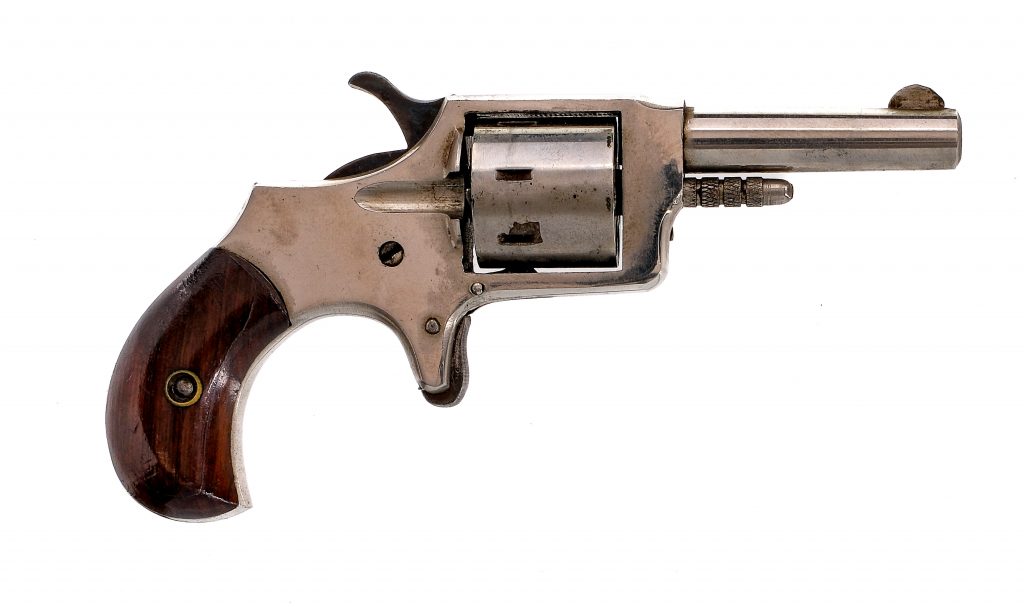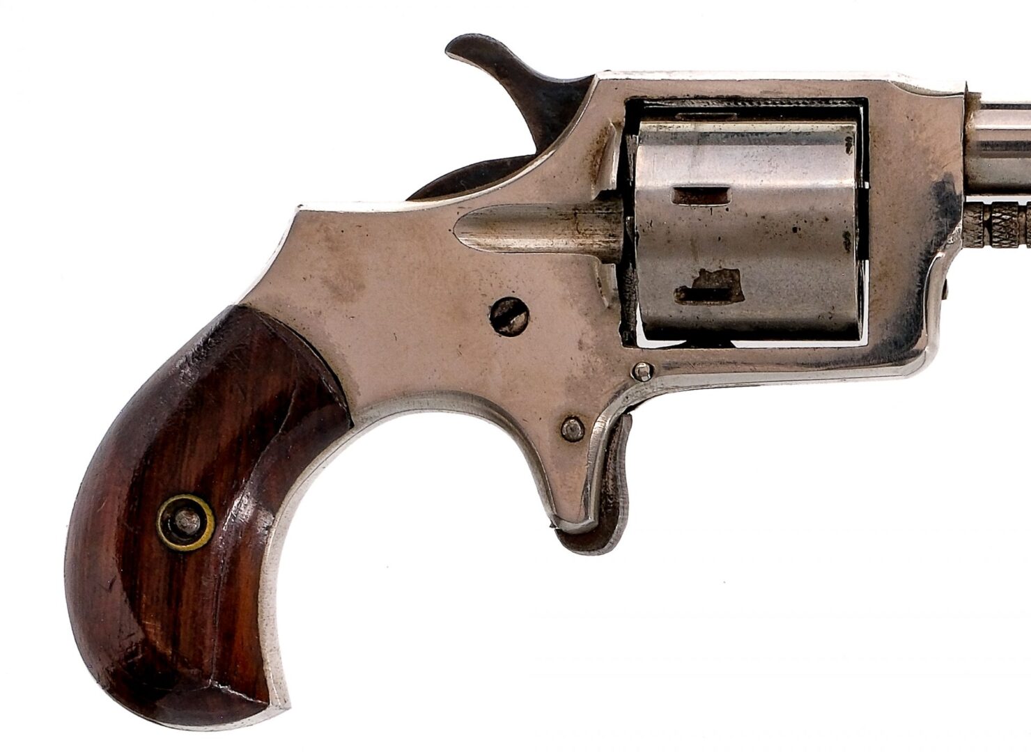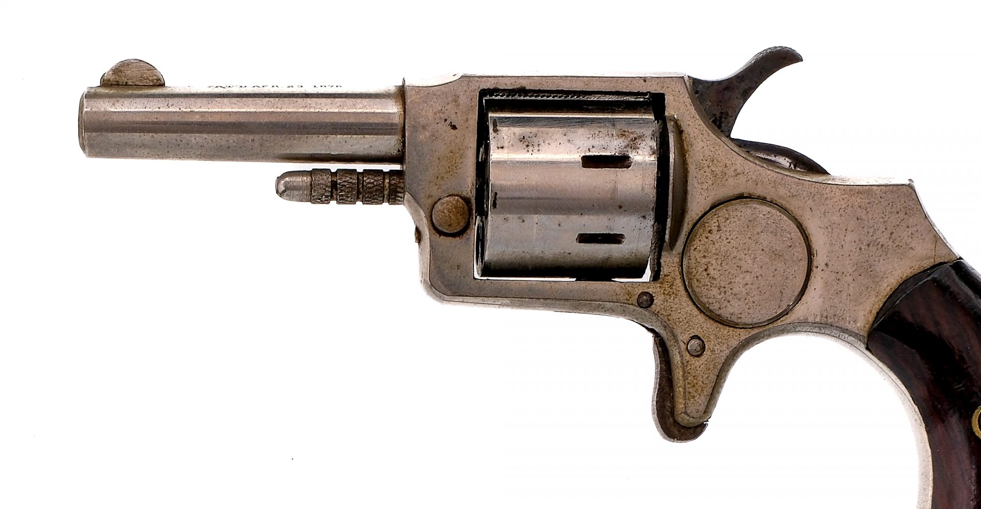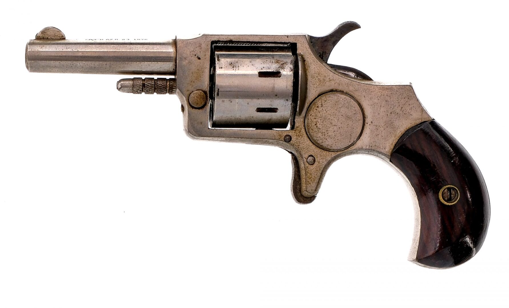 Description U.S. Pistol Company in .22 Long Rifle with a seven round capacity and a 2″ barrel. Smooth wood grip plates. Nickel finished frame, cylinder and barrel. Case colored solid trigger and checkered hammer. Under barrel cylinder release pin. Front fixed blade sight. Antique, No FFL required and ships to MOST buyers homes. Condition: Antique, Very Good with light scratches, finish wear/loss, handling wear and rust. The smooth bore has two spots of pitting otherwise very clean. Barrel Length: 2″ Serial: 710 Manufacturer: U.S. Pistol Co Caliber: .22 LR Model: SA Revolver Year-Range 1878-1898
