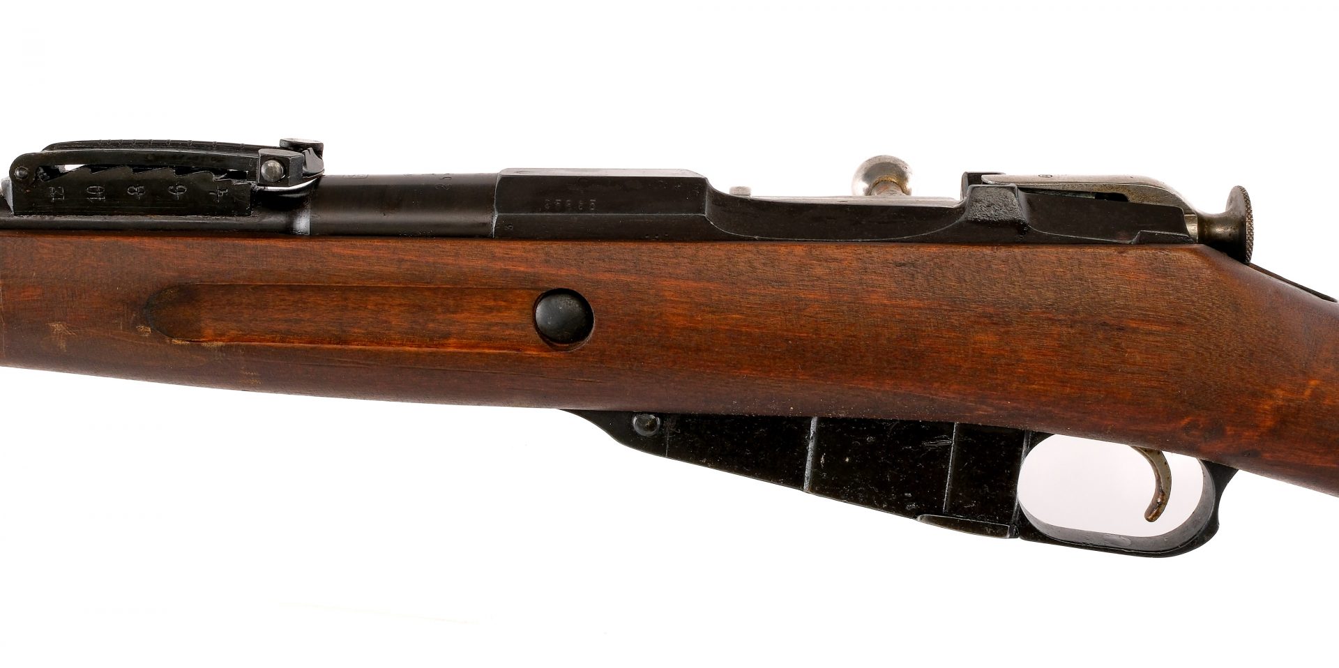 Description Finnish VKT M91 Mosin Nagant chambered in 7.62x54r with a five round internal magazine and a 30.5″ barrel. Manufactured in 1942 and imported by Century Arms, C.A.I., marked on the side of the barrel. Blued barrel, bands, hexagonal receiver, and magazine. Unfinished trigger and bolt with twist knob safety. Adjsutable curved rear sight and fixed front blade sight. Smooth wood forends with splice and straight stock with blued metal butt plate. Front and rear sling swivels. Forced serial number matching barrel, receiver, and bolt. The top of the barrel shank is marked [SA], “VKT”, D, 25885, 1942. Must ship to a FFL or C&R holder. Condition: Good/Very good with some scratches and general finish wear from handling/operation. Some spots of metal oxidation. Refinished parts. Excess cosmoline/oil on most of the finish. Some scratches, scuffs, and dings in the stock. Bright and clean bore with strong rifling. Barrel Length: 30.5″ Serial: 25885 Manufacturer: VKT Caliber: 7.62 x 54R Model: M91 Mosin Nagant Book# 04010