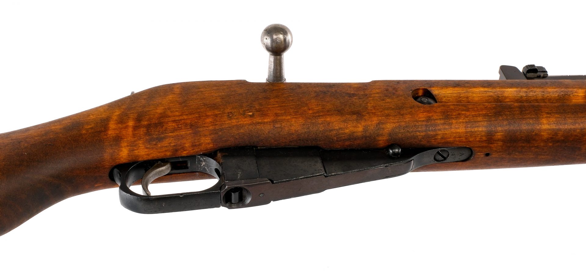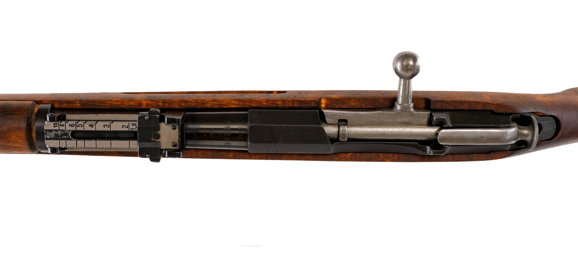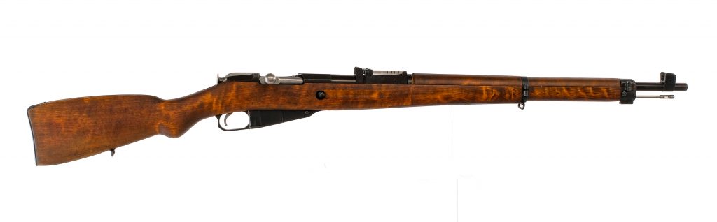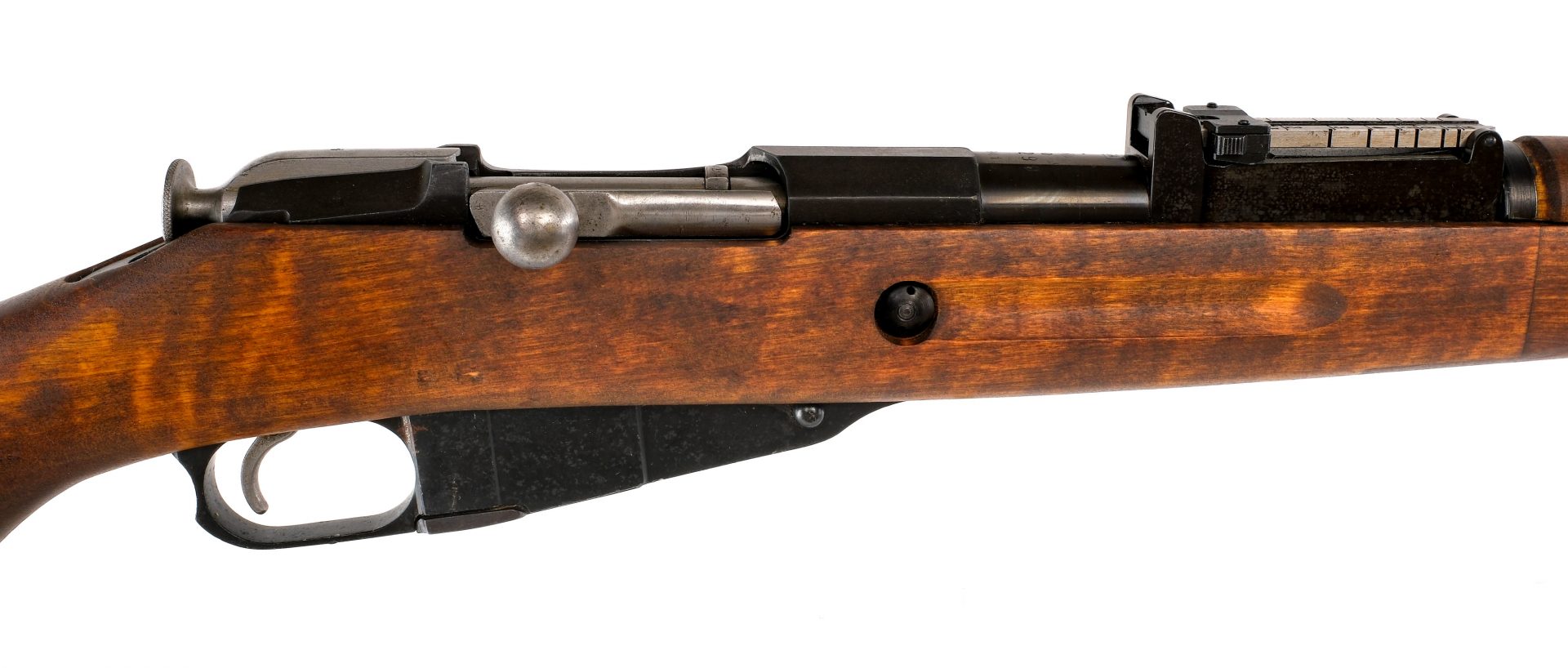Description Finnish VKT Arsenal Mosin Nagant M39 in 7.62x54mmR with a five round capacity and a 27″ barrel. Import marked on the muzzle end of barrel, CAI ST ALB VT. Finish worn blued butt plate. Smooth wood stock and front spliced forend. Blued trigger guard, hexagon receiver and barrel. Unfinished steel trigger and bolt. Under barrel removable cleaning rod and fixed bayonet lug. Rear flip up adjustable and front adjustable blade sight. Finnish SA marked barrel shank with date of 1941. D marked barrel shank for the D-166 cartridge. Must ship to a C&R or FFL holder. Condition: Good/Very Good with scratches, wood dings, finish wear and handling wear. Clean rifled bore. Barrel Length: 27″ Serial: 34290 Manufacturer: VKT Arsenal Year: 1941 Caliber: 7.62x54mmR Model: M39 Mosin Nagant Book# 04469