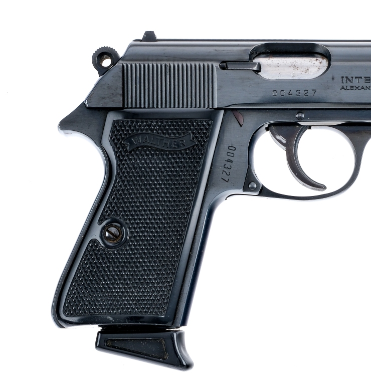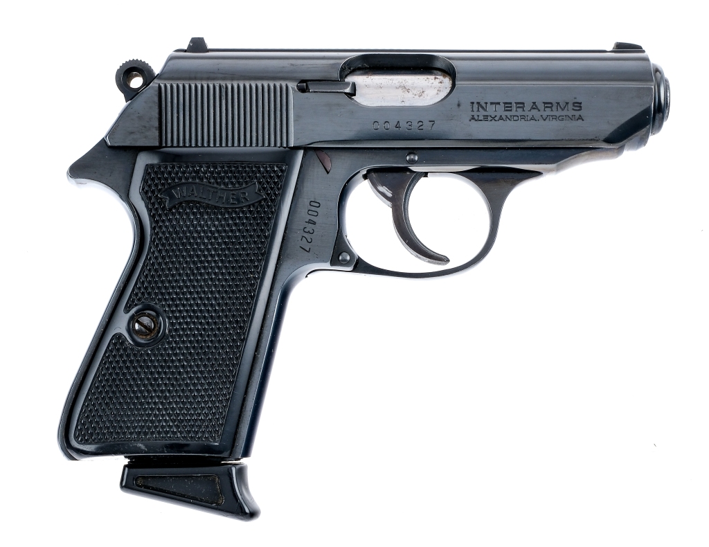 Description Walther PPK/S chambered in .380 caliber with two, seven round removable magazines and a 3 1/4″ barrel. Manufactured by Walther and imported by Interarms which is marked on the right side of the slide. Blued barrel, slide, frame, serrated trigger, and hammer. Black diamond checkered composite grips. Push button magazine release. Double/single action with slide mounted de-cocker/safety selector. Fixed iron sights. Comes in its factory box with matching serial number, factory paperwork, and two magazines. Must ship to FFL holder. Condition: Good/Very Good with light scratches and cosmetic handling wear. Light wear on the internal/operational parts from use. The rear sight is loose. Light speckling of metal oxidation on the outside of the barrel. Clean rifled bore. Barrel Length: 3.3″ Serial: 004327 Manufacturer: WALTHER Caliber: .380 ACP Model: PPK/S Book# 07962