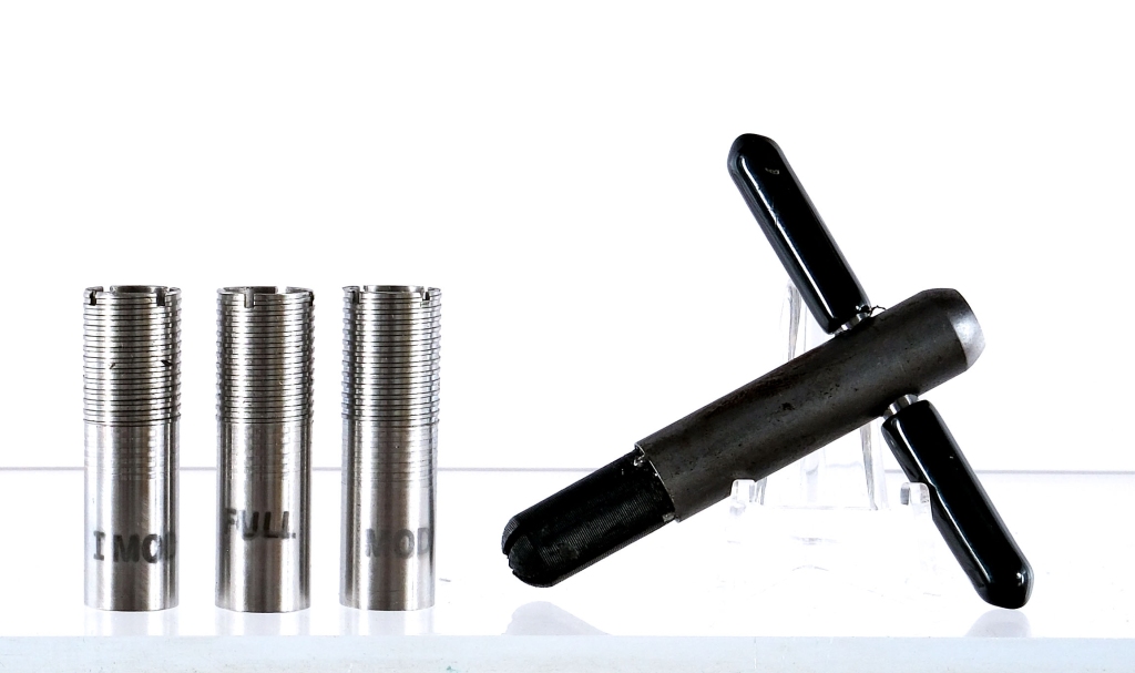Description Weatherby Athena chambered in .410 bore for 3″ shells with 28″ vented rib over/under barrels. The top and bottom bore have removable SK I chokes. Also includes removable Mod, IM, and Full chokes. Manufactured in Japan. Blued barrels and tang mounted safety. Stainless engraved lock, lever, and trigger guard. Gold plated trigger with barrel selector. Checkered beavertail forend and pistol grip stock with rubber recoil pad. Rose wood pistol grip cap with Diamond inlay. Dual bead sights with white front and brass rear. Serial number matching lock, barrel, and forend. Comes in a Weatherby leather/fabric case with brown interior. Manual, chokes, and choke tool included. Must ship to a FFL holder. Condition: Very good/Excellent with light scratches and handling wear. Light wear on the internal parts from operation and disassembly. Very bright and clean smooth bores Barrel Length: 28″ Serial: FF00010 Manufacturer: WEATHERBY Gauge: .410 Model: Athena Book# 07904