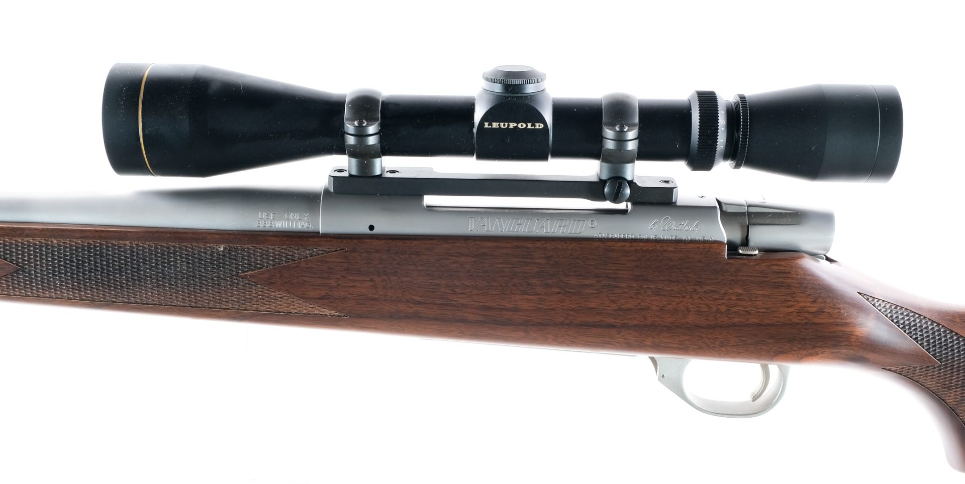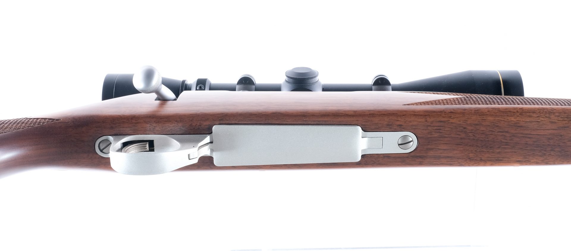 Description Weatherby Vanguard in .338 Winchester Magnum with a three round capacity and a 24″ barrel. Serrated rubber butt pad. Checkered Monte Carlo style stock and front forend. Matte silver finished trigger guard, serrated trigger, receiver, checkered bolt and barrel. Rear right side of receiver serrated safety switch. Left rear side of receiver located serrated bolt release. No fixed sights, comes mounted with a Leupold VX-1 3-9x40mm scope with clear glass and a duplex reticle. Must ship to a FFL holder. Condition: Very Good with light scuffs and handling wear. Clean rifled bore. Barrel Length: 24″ Serial: VS224167 Manufacturer: Weatherby Caliber: .338 Win Mag Model: Vanguard Book# X-158