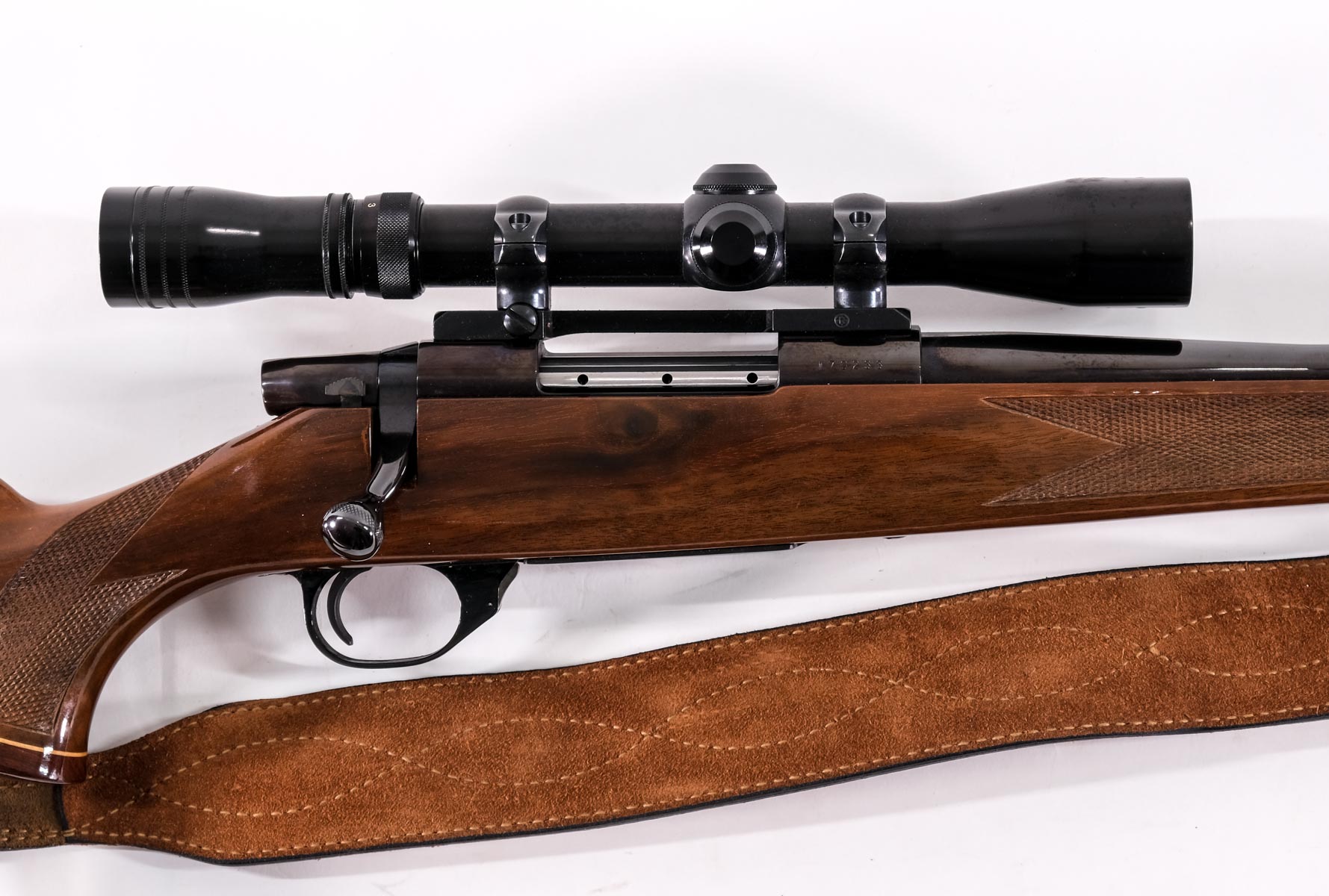Very good to excellent. Older redfield scope. Only storage marks and blems around. Classy weatherby styling with fancy wood accents and high polish bluing. Action and lock up are like new. Japan Made
