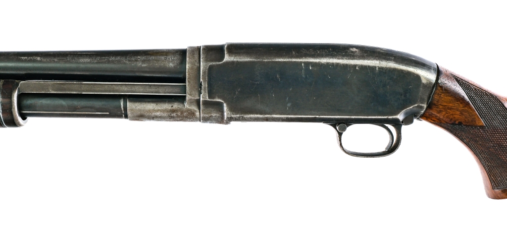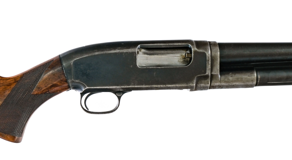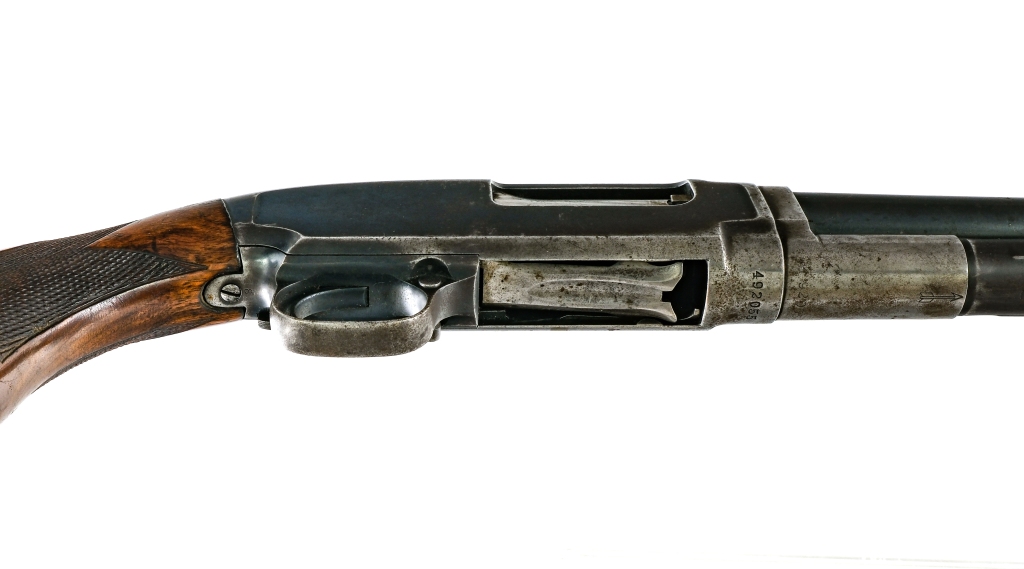 Description Winchester Model 12 in 16 gauge 2 3/4″ with a six round capacity and a 28″ Arms Ingenuity adjustable “Jet-Choke” barrel. Made in New Haven Connecticut in 1927. Rubber butt plate. Checkered wood stock and serrated front forend. Blued trigger guard, trigger, receiver, magazine tube and barrel. Rear receiver action release. Front trigger guard push button safety. Front fixed metal bead sight. Matching serial number on the barrel and receiver. Must ship to a C&R or FFL holder. Condition: Good with scratches, finish wear/loss, the butt stock has been replaced at some point and spots of rust. The smooth bore has a tiny touch of rust otherwise clean. Barrel Length: 28″ Serial: 492055 Manufacturer: Winchester Gauge: 16 Year: 1927 Model: 12 Book# 08394
