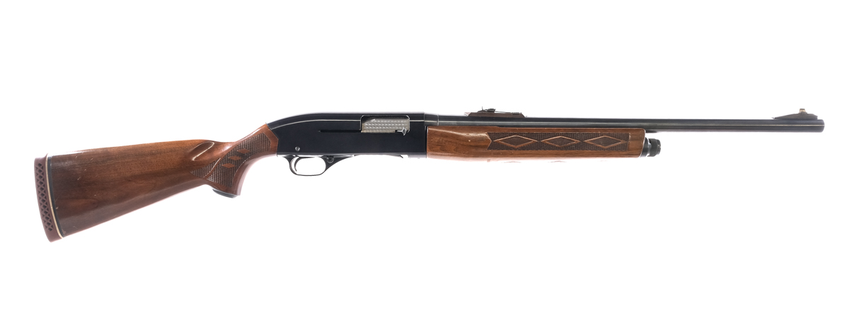 Description Winchester Model 1400 in 12 gauge 2 3/4″ Deer Slug with a three round capacity and a 22″ barrel. Serrated rubber butt plate. Checkered wood stock and front foregrip. Blued trigger guard, trigger, receiver and barrel. Front trigger guard push button safety. Right side of receiver charging handle. Rear adjustable and front fixed blade sight. WP, Winchester Proof marked receiver and barrel. Must ship to a C&R or FFL holder. Condition: Very Good with light scratches, wood dings and handling wear. Clean smooth bore. Barrel Length: 22″ Serial: 130014 Manufacturer: Winchester Gauge: 12 Model: 1400 Year-Range 1964-1972 Book# 10-658