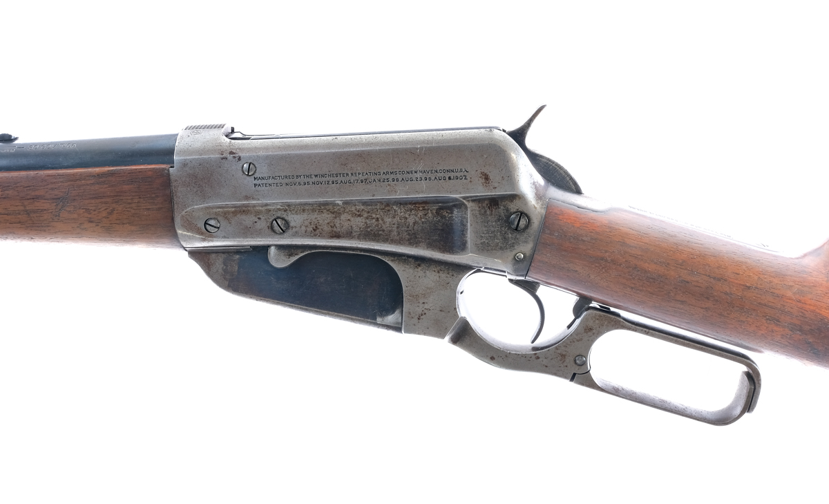 Description Winchester 1895 chambered in .30-06 with a four round internal magazine and a 24″ barrel. Blued barrel, receiver, magazine, lever, hammer, and trigger. Wood forend and buttstock with metal butt plate. Rear adjustable buckhorn and front fixed blade iron sights. Front and rear sling eyelets, the rear sling swivel bracket has been replaced with a single eyelet. Winchester “WP” proof mark on the barrel and receiver. Both sides of the butt stock are marked with a stamp: J.H. RARICK. Must ship to FFL or C&R holder. Condition: Good/Very good with scuffs, scratches, spots of finish loss and metal oxidation on the barrel. Most of the finish is gone on the receiver, magazine, lever, and butt plate. Heavy metal oxidation on the receiver, lever, and butt plate. The wood has scratches, scuffs, and dings. Some deep scratches on the left side of the stock. The bore as some spots of rust but has strong rifling. Action functions as expected. Barrel Length: 24″ Serial: 416994 Manufacturer: WINCHESTER Year: 1925 Caliber: .30-06 Springfield Model: 1895 Book# 9-386