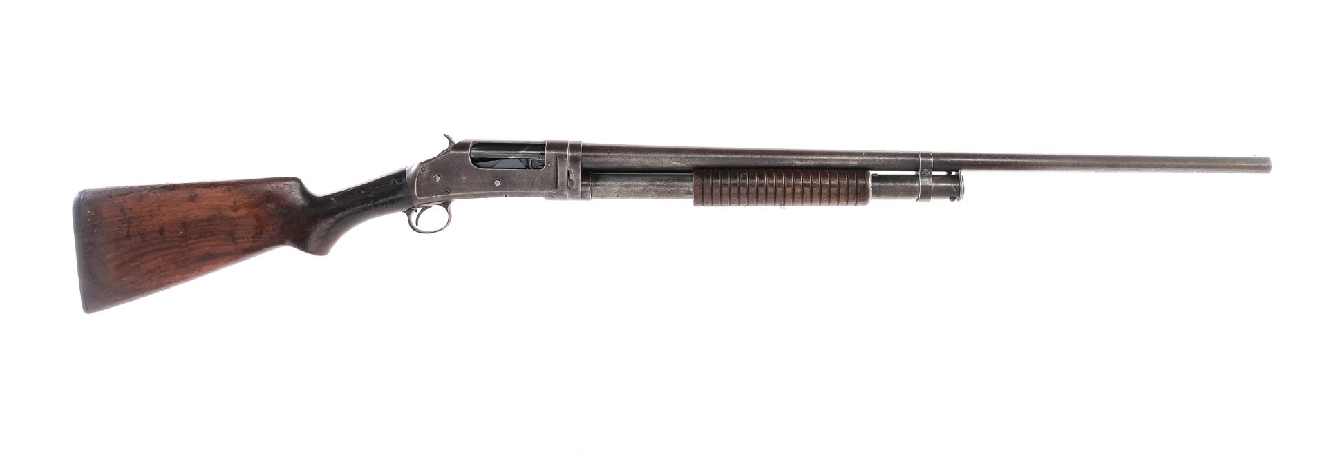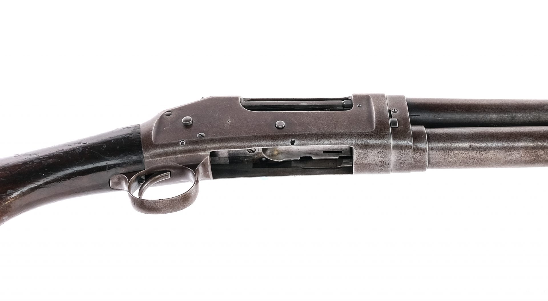 Description Winchester Model 1897 pump action shotgun chambered in 16 gauge with a 28″ barrel and four round tube magazine. Features smooth hardwood stock and ribbed wooden foregrip. Blued receiver, barrel, magazine tube, trigger, and trigger guard. Winchester Repeating Arms Co branded butt plate. Trench rear sight and brass bead front sight. Must ship to C&R or FFL holder. Condition: GOOD, with scratches and dings along wooden furniture, no visible cracks. Bluing is worn to a patina, with finish loss on operating parts. Smooth bore has some fine pitting along the inside. Barrel Length: 28″ Serial: 612514 Manufacturer: Winchester Gauge: 16Ga Year: 1914 Model: M1897 Book# 01489