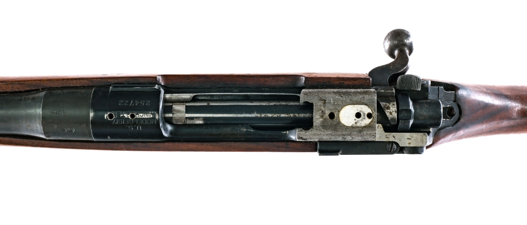 Description Sporterized U.S. Winchester 1917 Enfield chambered in .30-06 Springfield with a six round capacity and a 21.5″ barrel. Rubber butt pad. Smooth Monte Carlo style stock. Blued barrel, receiver, trigger, and trigger guard. Rear right side of receiver safety lever. Rear left side of the receiver bolt release. Mid barrel Williams and front Lyman fixed blade sight. Top of receiver is drilled and tapped for optics. Top of barrel shank is marked with flaming bomb and Eagle proofs. Metal loops for mounting a shoulder sling. Must ship to a C&R or FFL holder. Condition: Fair as the stock being replaced, finish wear/loss, spots of rust, drilled and tapped receiver, rear top of receiver has been modified, barrel has been cut down and handling wear. The rifled bore has light rust with strong visible rifling. Barrel Length: 21.5″ Serial: 254722 Manufacturer: Winchester Year: 1918 Caliber: .30-06 Sprg Model: 1917 American Enfield Book# 08418