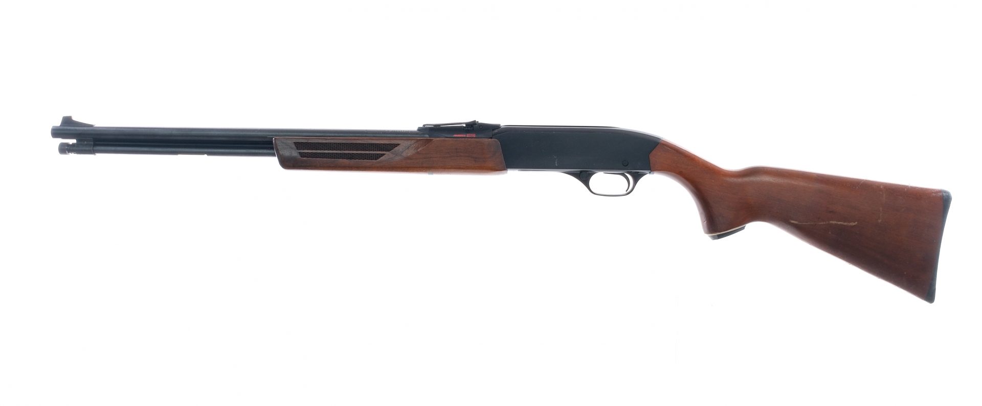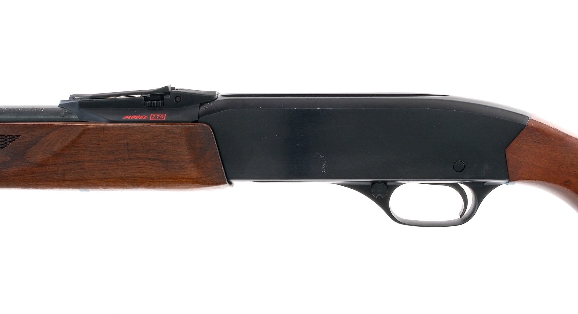 Description Winchester Model 270 chambered in .22 short, long, and long rifle with a varied capacity magazine tube and a 21″ barrel. Blued barrel, magazine tube, and trigger. Black finished alloy frame with a jeweled bolt. Cross bolt safety selector. Checkered wood forend and smooth pistol grips tock with serrated Winchester butt plate. Adjustable rear sight and fixed front blade. Must ship to a FFL or C&R holder. Condition: Very Good with light scratches and wear from handling and operation. Varying lights spots of metal oxidation on the barrel. Scratches and dings on the wood. Clean rifled bore. Barrel Length: 21″ Serial: 194933 Manufacturer: WINCHESTER Caliber: .22 Short, Long, Long Rifle Model: 270 Book# 01689