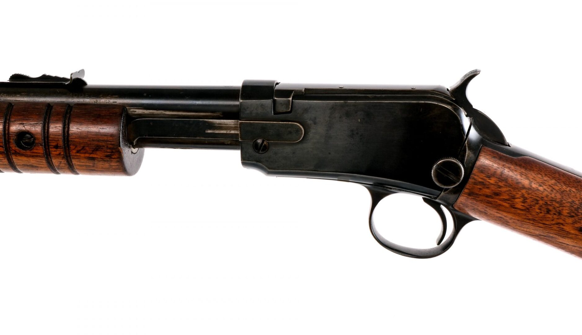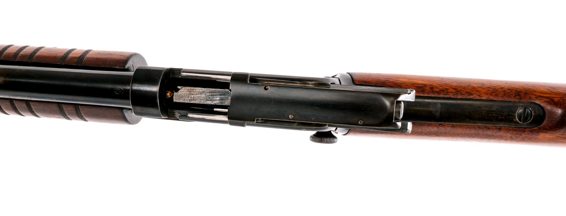 Description Winchester Model 62 Take-Down in .22 Short, Long or Long Rifle with a varied capacity and a 23″ barrel. Checkered composite wood stock and serrated front forend. Blued trigger guard, trigger, checkered hammer, receiver, magazine tube and barrel. Left side of receiver take-down screw. Under barrel checkered magazine tube. Rear adjustable and front fixed blade sight. WP, Winchester Proof marked receiver and barrel. Must ship to a C&R or FFL holder. Condition: Good with light scratches, finish wear/loss and touches of rust. Clean rifled bore. Barrel Length: 23″ Serial: 186617 Manufacturer: Winchester Year: 1947 Caliber: .22 S L LR Model: 62 Book# 05071
