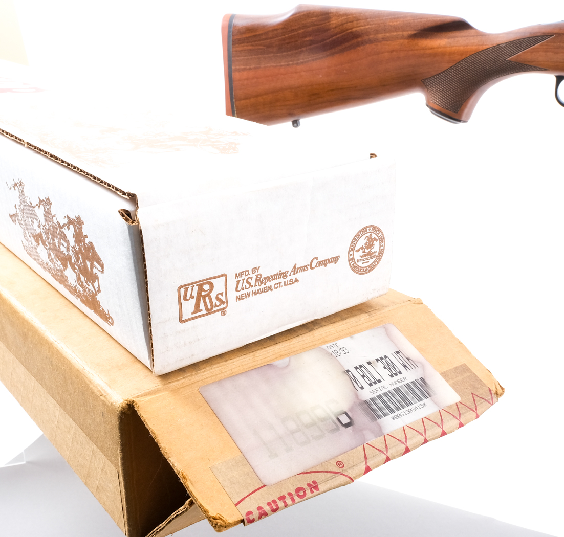 Description Winchester 70 XTR in .300 Weatherby Magnum with a three round capacity and a 24″ barrel. Rubber butt pad. Checkered Monte Carlo style stock and front foregrip. Blued trigger guard, untextured trigger, magazine floor plate, receiver, bolt handle and barrel. Jeweled bolt body. Rear bolt safety switch. Rear left side of receiver bolt release. Rear flip up adjustable and front hooded fixed blade sight. Receiver is drilled and tapped for optics. Metal eyelet studs for mounting a shoulder sling. Comes in its factory box with matching serial number on outer box. Must ship to a FFL holder. Condition: Like New with light handling wear. Clean rifled bore. Barrel Length: 24″ Serial: G1903415 Manufacturer: Winchester Caliber: .300 Wby Mag Model: 70 XTR Book# 9-564