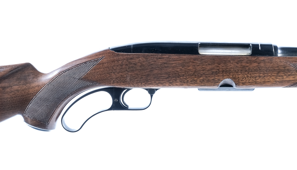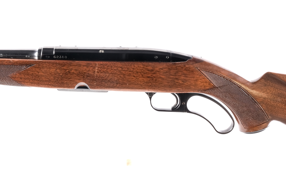 Description Winchester Model 88 in .243 Winchester with one, four round removable magazine and a 22″ barrel. Checkered composite butt plate. Checkered wood stock and front foregrip. Blued hand lever, serrated trigger, receiver and barrel. Front trigger guard located push button safety. Magwell serrated magazine release. Rear flip up adjustable and front hooded fixed blade sight. Metal loops for mounting a shoulder sling. Top of receiver is drilled and tapped for optics. Must ship to a C&R or FFL holder. Condition: Good/Very Good with light scuffs, wood dings and handling wear. Clean rifled bore. Barrel Length: 22″ Serial: 62310 Manufacturer: Winchester Year: 1958 Caliber: .243 Win Model: 88 Book# 10-617