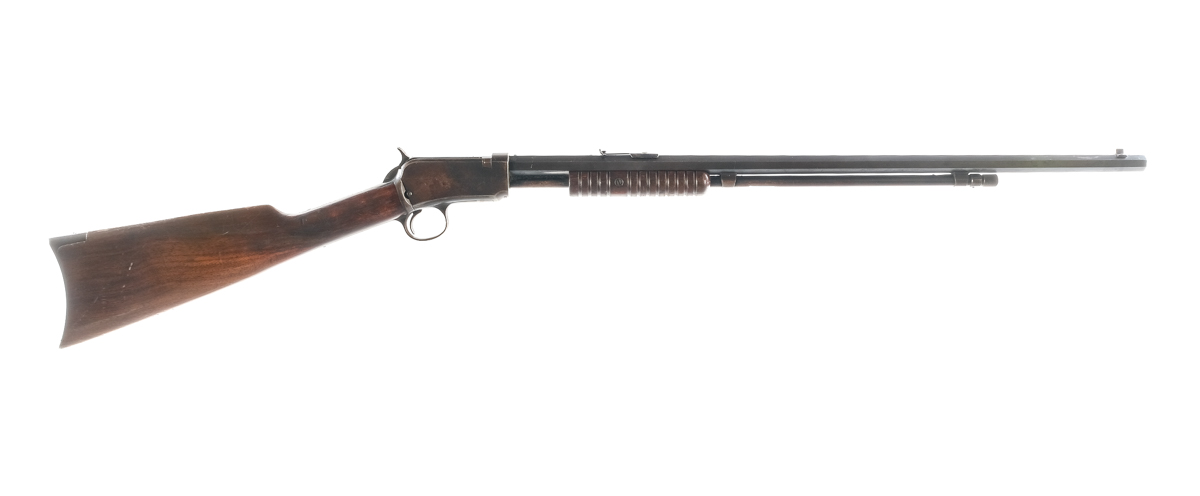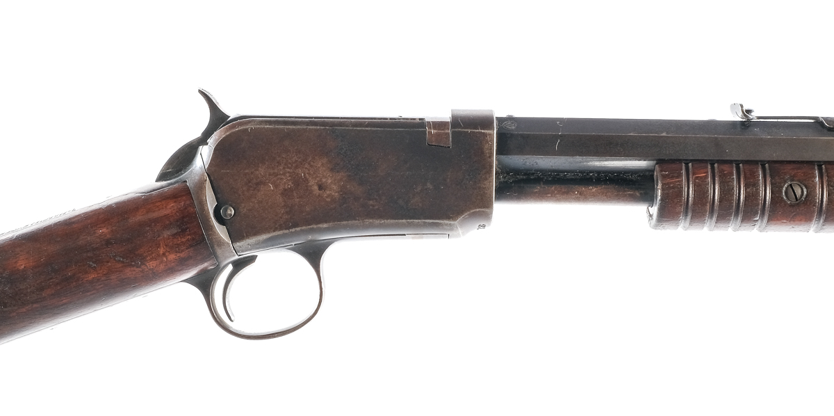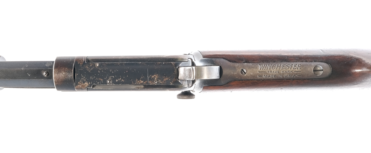 Description Winchester Model 90 Take-Down in .22 Short with a twenty two round capacity and a 24″ octagon barrel. Contoured metal butt plate. Smooth wood stock and front serrated foregrip. Blued trigger guard, trigger, receiver, checkered hammer, magazine tube and barrel. Under barrel checkered magazine tube knob. Rear adjustable and front fixed blade sight. Left side of receiver take-down screw. WP, Winchester Proof marked barrel and receiver. Must ship to a C&R or FFL holder. Condition: Good with scratches, wood dings, finish wear/loss and rust. Clean rifle bore. Barrel Length: 24″ Serial: 828179 Manufacturer: Winchester Year: 1930 Caliber: .22 Short Model: 90 Book# 267