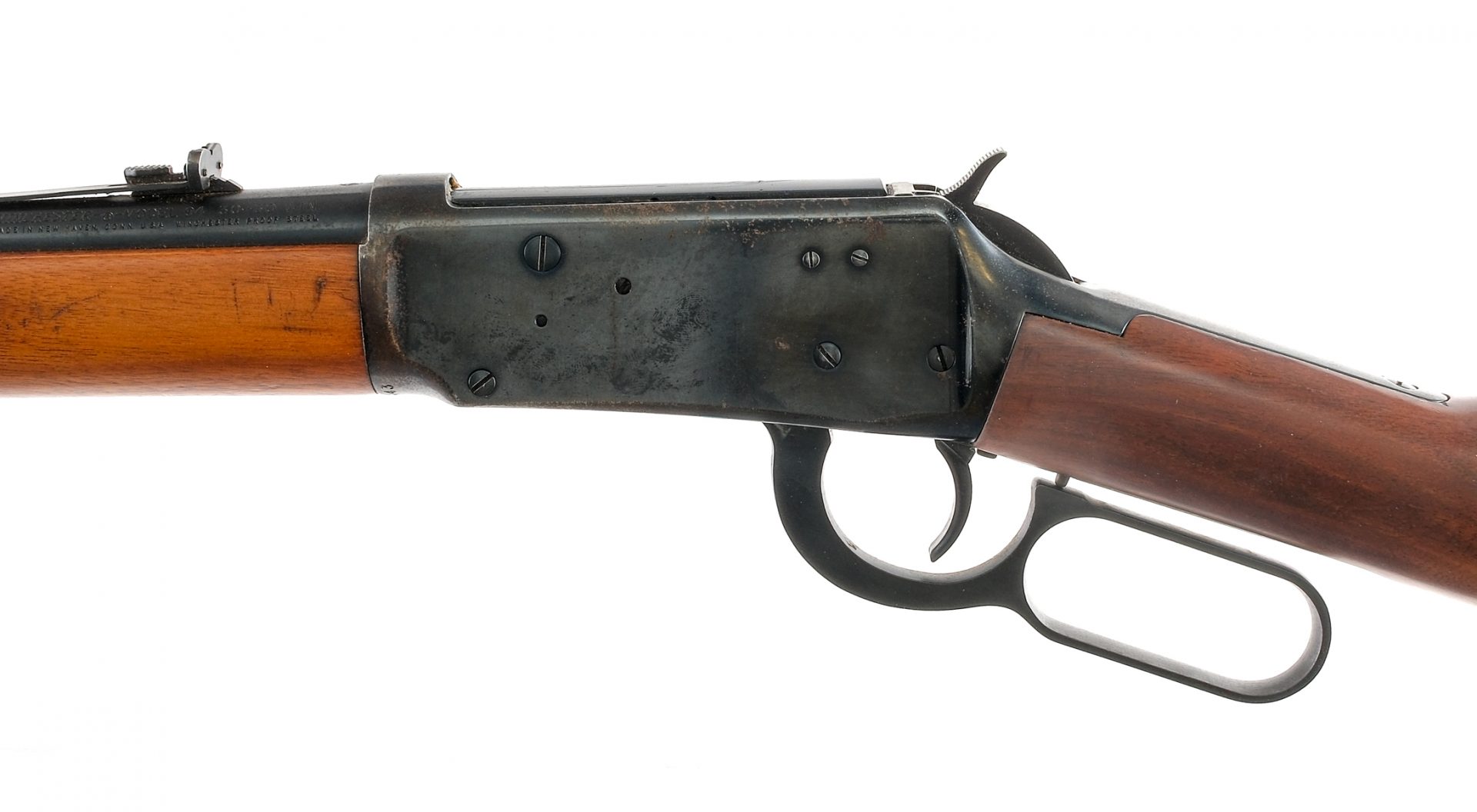 Description Winchester 94 chambered in .30-30 Winchester with a full length tube magazine and a 20″ barrel. Manufactured in 1979 with serial number 4814643. Blued barrel, magazine tube, receiver, loading gate, and controls. Smooth wood forend and straight stock with checkered Winchester butt plate. Adjustable rear buckhorn and hooded front blade. Must ship to FFL holder. Condition: Good with light scratches and wear from handling and operation. Light speckling of metal oxidation on the barrel and magazine tube. Heavier speckling of metal oxidation on the receiver and tang with spots of finish loss and patina. Light scratches, and dings in the wood. Mostly clean bore with strong rifling and a couple touches of metal oxidation. Barrel Length: 20″ Serial: 4814643 Manufacturer: WINCHESTER Year: 1979 Caliber: .30-30 Winchester Model: 1894 Book# 02518
