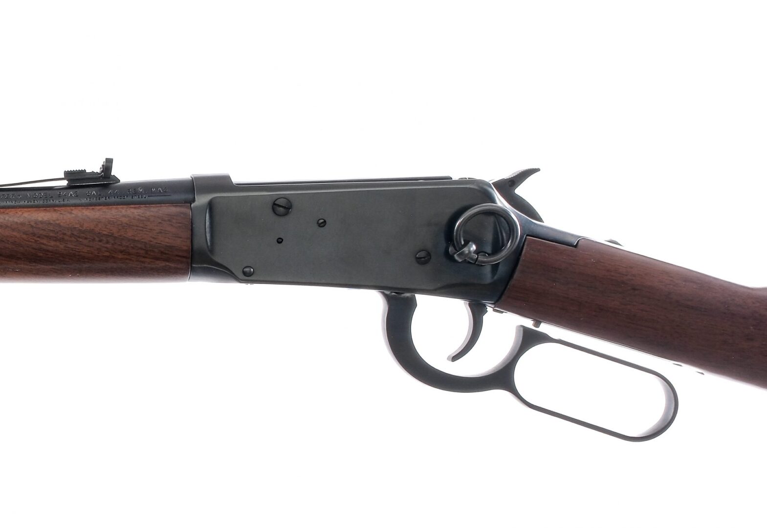 Description Winchester 94 AE (Angle Eject) chambered in .44 Remington Magnum with a eleven round tube magazine and a 20″ barrel. Blued barrel, magazine tube, barrel bands, frame, loading gate, saddle ring, hammer with knurled extension, trigger and lever. Tang safety. Smooth wood forend and straight stock with checkered black Winchester butt plate. Adjustable rear buckhorn sight and fixed front blade. Must ship to a FFL holder. Condition: Very Good with light scratches and finish wear from handling and operation. Light scratches and dings on the wood. Clean and bright bore with strong rifling. Barrel Length: 20″ Serial: 6512541 Manufacturer: WINCHESTER Caliber: .44 Remington Magnum Model: 94 AE Book# 03079