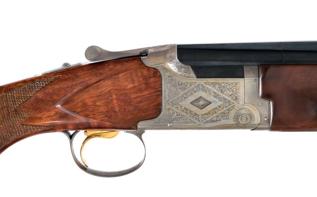 Description Winchester Diamond Grade Skeet in 20 gauge 2 3/4″ with a two round capacity and a 27.5″ over under ported top rib vented barrel. Made in the 1980s in Japan for Winchester. Both bores have fixed Skeet Chokes. Rubber butt pad. Premium figured checkered pistol grip wood stock and front forend. Coin finished engraved trigger guard, top lever and box lock receiver. Gold finished trigger. Blued barrel. Rear lock tang located knurled slide button safety. Mid barrel and front fixed white bead sight. Comes in its factory box with matching serial number along with a Winchester locking fine carry case. Must ship to a FFL holder. Condition: New with light handling wear. Clean smooth bores. Measurements: LOP @ Heel= 14 3/8″ LOP @ Toe= 14 1/2″ Choke: O= (SKEET) U= (SKEET) Drop @ Comb = 1 1/4″ Drop @ Heel = 2″ Weight= 7.0 lbs. Barrel Length: 27.5″ Serial: DG279179E Manufacturer: Winchester Gauge: 20 Model: Diamond Grade Skeet Year-Range 1982-1989 Book# 08392