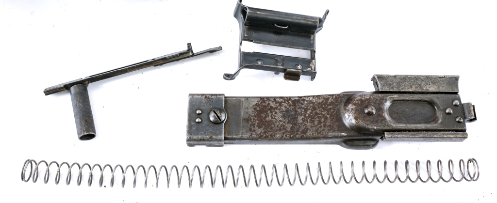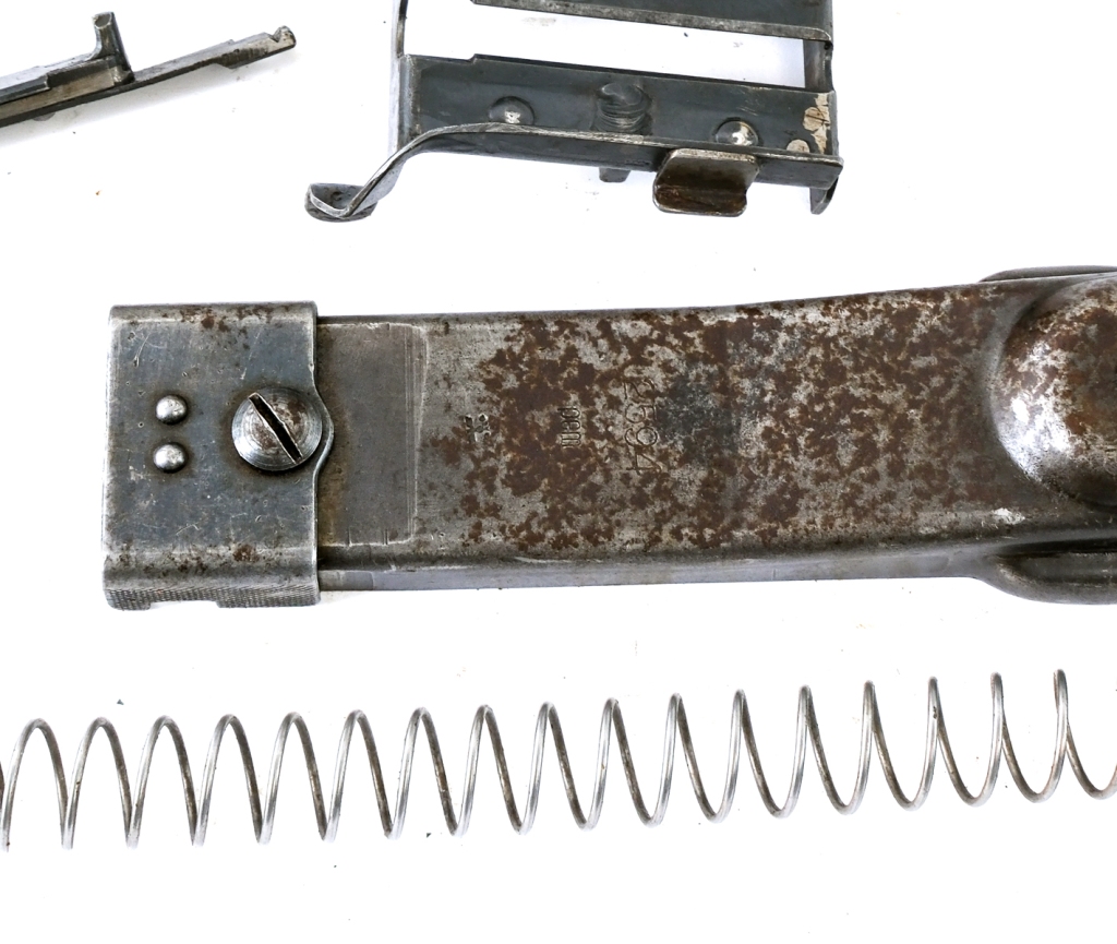 Description Desirable MG-34 parts kit with live barrel, receiver pieces and all parts needed for repair or to make a nice display. Parts include cot-1945 2594 shroud, serial matching top cover, bea marked bolt, dfb 43 marked bipod with adjustment knob, Israeli marked barrel, 7928j marked buffer, and 6268 marked bakelite stock. Includes complete fire control group, charging handle, feed tray, mainspring, and assorted small parts. Non gun and ships direct to buyers home. Condition: Good, All parts appear to in good serviceable condition including barrel with clean, rifled bore. Barrel Length: 48″ Serial: Various Manufacturer: Various Caliber: 8mm Model: MG34 Year-Range 1941-1945