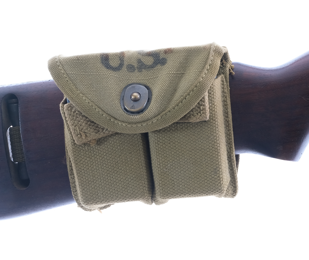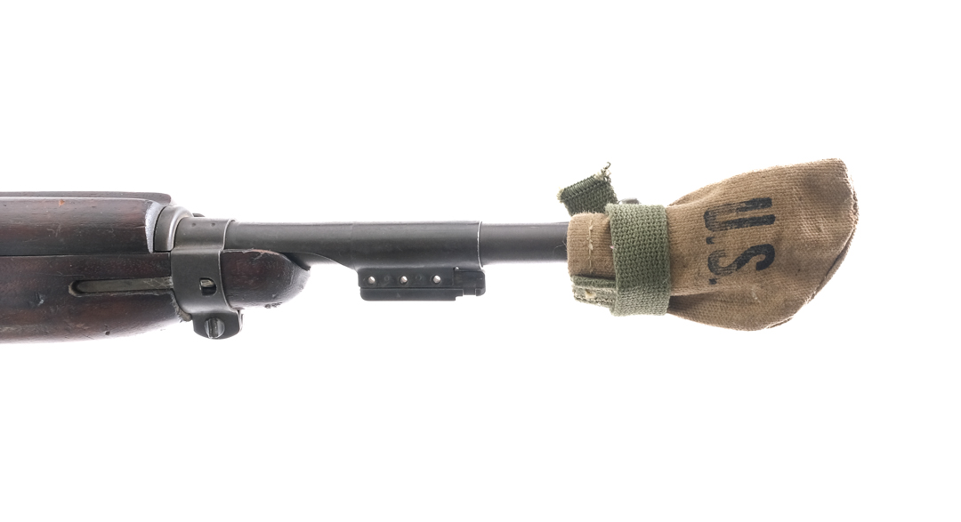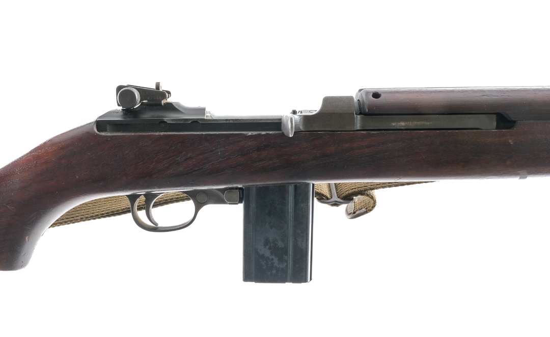 Description WWII Saginaw Gear model M1 carbine chambered in .30 Carbine. This example with serial number 1873122 and dating to 1943 features an “UNDERWOOD” marked barrel with date “9 – 43” over Flaming Bomb, type 3 barrel band, early flat type bolt and late style rear sight. The handguard is an early two rivet example and the stock has “M-U” stamped in the sling well. Included is a 1943 dated magazine pouch, muzzle cover, period web sling and three, 15 round magazines. FFL/C&R Only, check laws regarding HIGH CAPACITY feeding devices. Condition: This example is in Excellent condition with a good bore with visible rifling. The stock has scattered and light marks from use and handling. The muzzle gauges .302 and the action functions as expected. Barrel Length: 18″ Serial: 1873122 Manufacturer: Saginaw Year: 1943 Caliber: .30 Carbine Model: M1