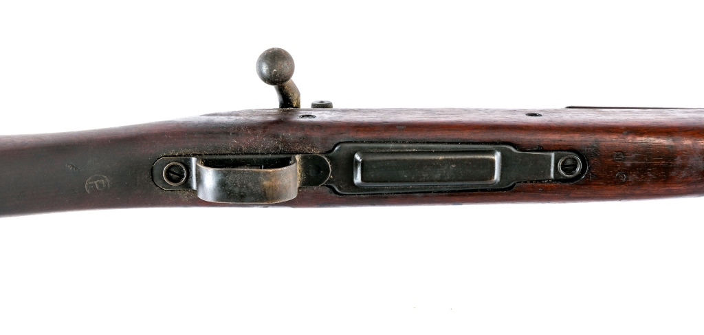 Description World War II Remington 03-A3 chambered in .30-06 Springfield with a five round internal magazine and a 24″ barrel. Manufactured in 1943 with serial number 3908003. The barrel is also dated 1943 and stamped “R.A. (FLAMING BOMB PROOF) 7-43”. Parkerized barrel, receiver, magazine floorplate, trigger, trigger guard, and bolt with flag style safety. Receiver mounted magazine cut off. Adjustable rear sight and fixed front blade. Smooth wood forend and straight grip with with metal trap door butt plate. The left side of the stock is stamped with Springfield Armory Cross Cannons, “RA” and “FJA” Frank J Atwood acceptance cartouche. The bottom of the stock is stamped with circled “P”. Other small cartouches forward of the magazine floor plate. Front and rear sling swivels. Must ship to a FFL or C&R holder. Condition: Good with light scratches, edge wear, and general cosmetic handling wear. Some darkening and discoloration on the parkerization. Spots and speckling of metal oxidation. Heavier metal oxidation on the butt plate. Normal wear on the operational parts from use. The stock has been sanded and refinished, most markings are still visible but dull. Light scratches and wear on the wood. Bright and clean bore with strong rifling. Barrel Length: 24″ Serial: 3908003 Manufacturer: REMINGTON ARMS COMPANY Caliber: .30-06 Springfield Model: 03-A3 Book# 07531
