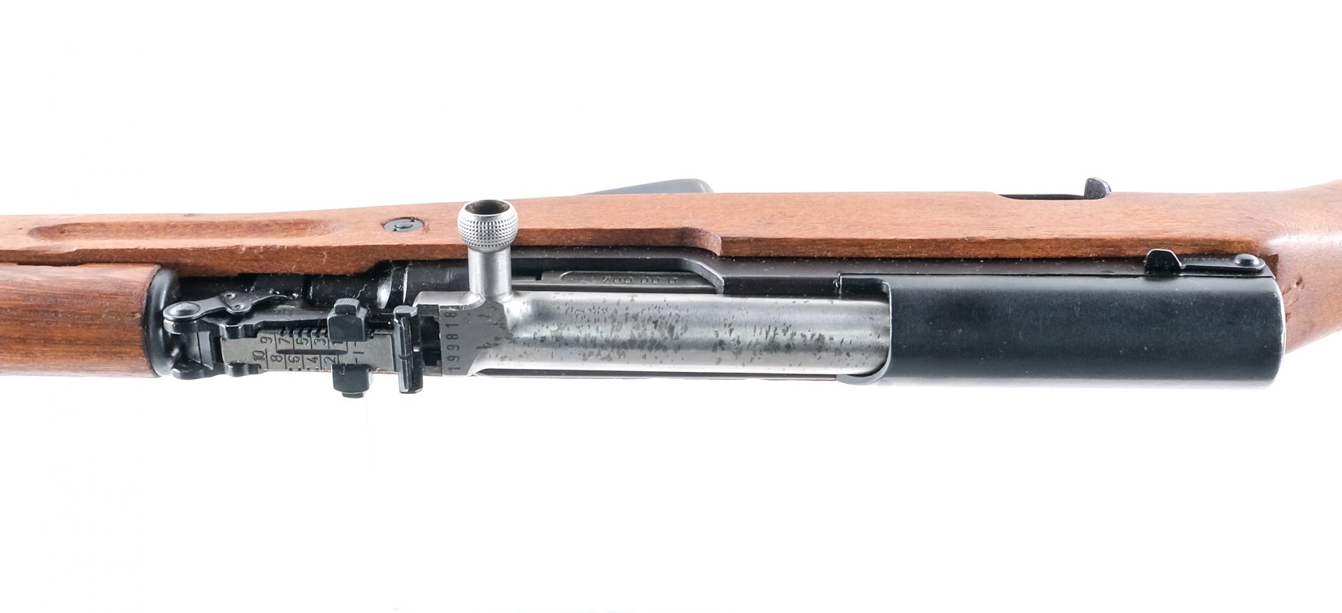 Description Yugoslavian M59/66 SKS in 7.62x39mm with a ten round capacity and a 24″ barrel. Import marked on the right side of barrel: Cherrys GSO NC M59/66 Zastava FRY 762X39.Rubber butt pad with cleaning kit door, empty. Smooth wood stock and front forend. Blued trigger guard, untextured trigger, magazine box, receiver and barrel. Rear trigger guard safety switch. Unfinished checkered bolt handle. Grenade launching muzzle attachment and flip up sight. Under barrel flip out blade bayonet. Rear flip up adjustable and front adjustable hooded sight. Metal loops for mounting a shoulder sling. Stock, receiver and bolt have matching serial number. Must ship to a C&R or FFL holder. Condition: Good/Very Good with light scratches, finish wear and handling wear. Clean rifled bore. Barrel Length: 24″ Serial: G199818 Manufacturer: Yugoslavia Caliber: 7.62×39 Model: SKS M59/66 Book# 9-581