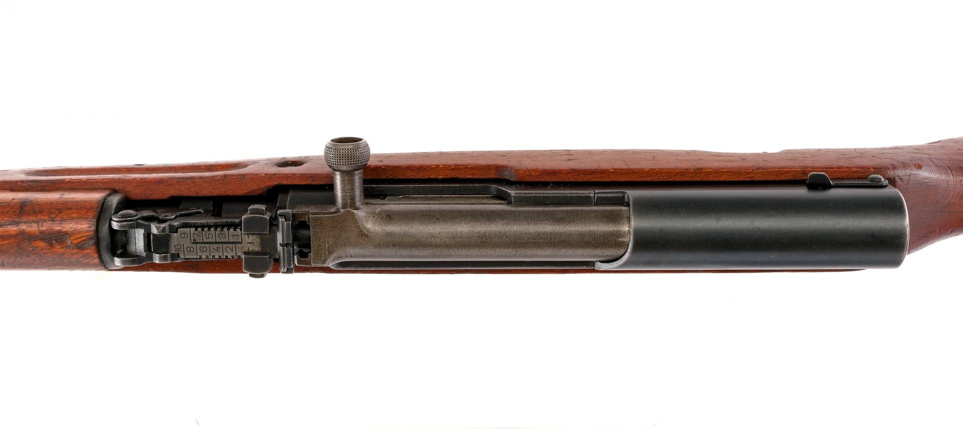 Description Yugoslavian M59/66 SKS chambered in 7.62x39mm with a ten round integral magazine and a 22″ barrel with the grenade cup muzzle device. Manufactured in 1974 and imported by Century Arms, C.A.I., marked on the side of the barrel. Front bayonet lug with folding bayonet. Adjustable front sight post with grenade launcher sight. Blued barrel, gas tube, receiver dust cover, magazine trigger, and trigger guard. Unfinished bolt with knurled charging handle. Adjustable rear leaf sight. Trigger guard safety lever. Wood top hand guard and stock with rubber trap door butt plate. Front and rear sling mounts. Serial number matching receiver, dust cover, magazine, and stock. The other parts are mismatched. Must ship to a FFL or C&R holder. Condition: Good with scratches, scuffs, sharp edge wear and general handling wear. Spots of metal oxidation and finish patina. Scratches, scuffs, and dings in the stock. Carved letters in the stock. The bore shows some spots of metal oxidation with strong visible rifling. Barrel Length: 22″ Serial: K-421338 Manufacturer: Yugoslavia Caliber: 7.62x39mm Model: M59/66 SKS Book# 04136