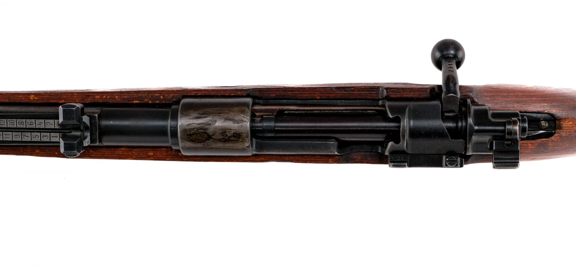 Description Zastava Arms M98/48 in 7.92x57mm (8mm Mauser) with a five round capacity and a 24″ barrel. German K98 reworked in Yugoslavia before 1950 at Factory 44- (Zastava Arms) scrubbed of all German markings. Metal butt plate. Smooth laminated wood stock with eyelet to disassemble bolt to remove firing pin. Blued trigger guard, trigger, receiver, bolt and barrel. Rear bolt safety switch. Rear left side of receiver bolt release. Under barrel fixed bayonet lug, missing the removable cleaning rod. Rear flip up adjustable and front hooded fixed sight. Mounted with an unbranded leather shoulder sling. Serial number matching on the bolt, receiver and stock. Must ship to a C&R or FFL holder. Condition: Good/Very Good with light scratches, finish wear and handling wear. Clean rifled bore. Barrel Length: 24″ Serial: Z9178 Manufacturer: Zastava Arms Caliber: 7.92x57mm 8mm Model: M98/48 K98 Book# 03944