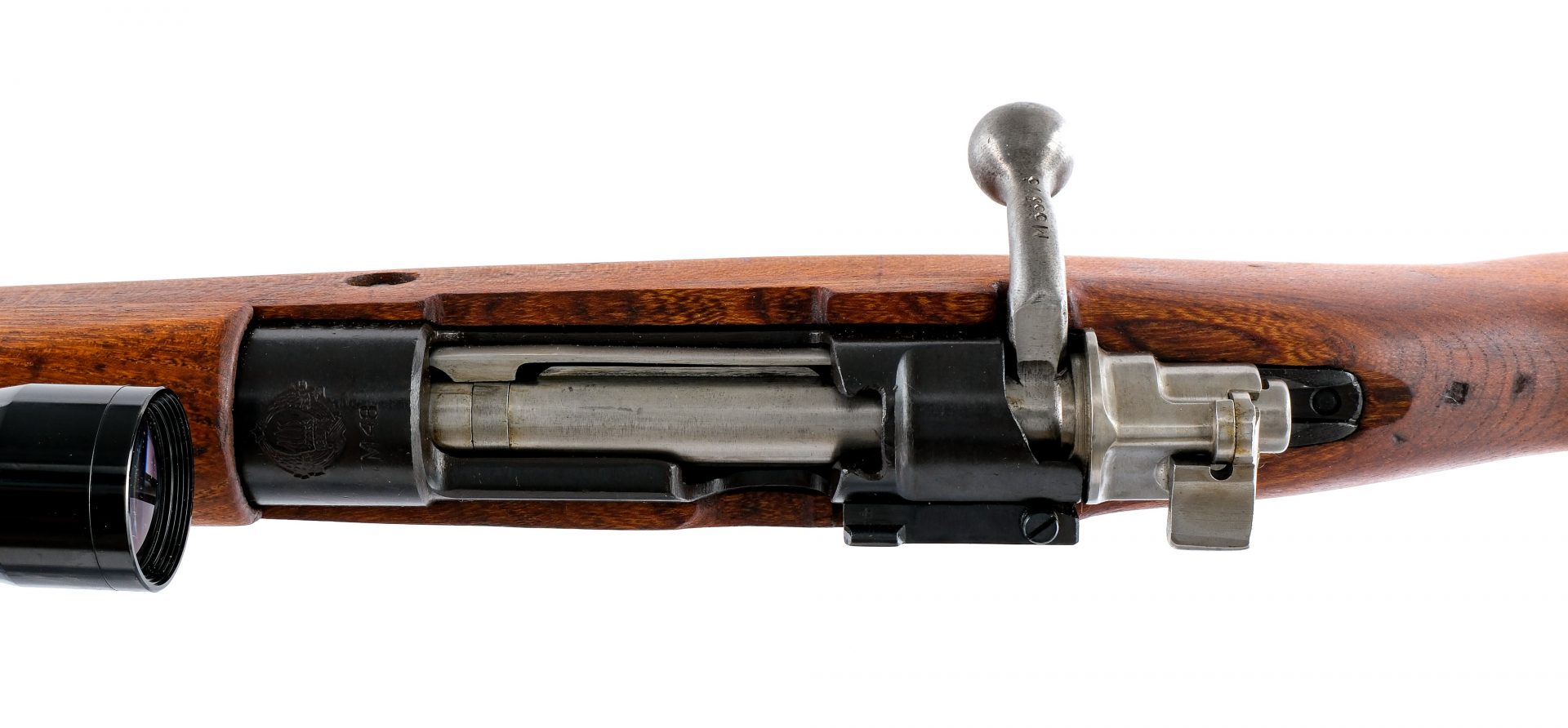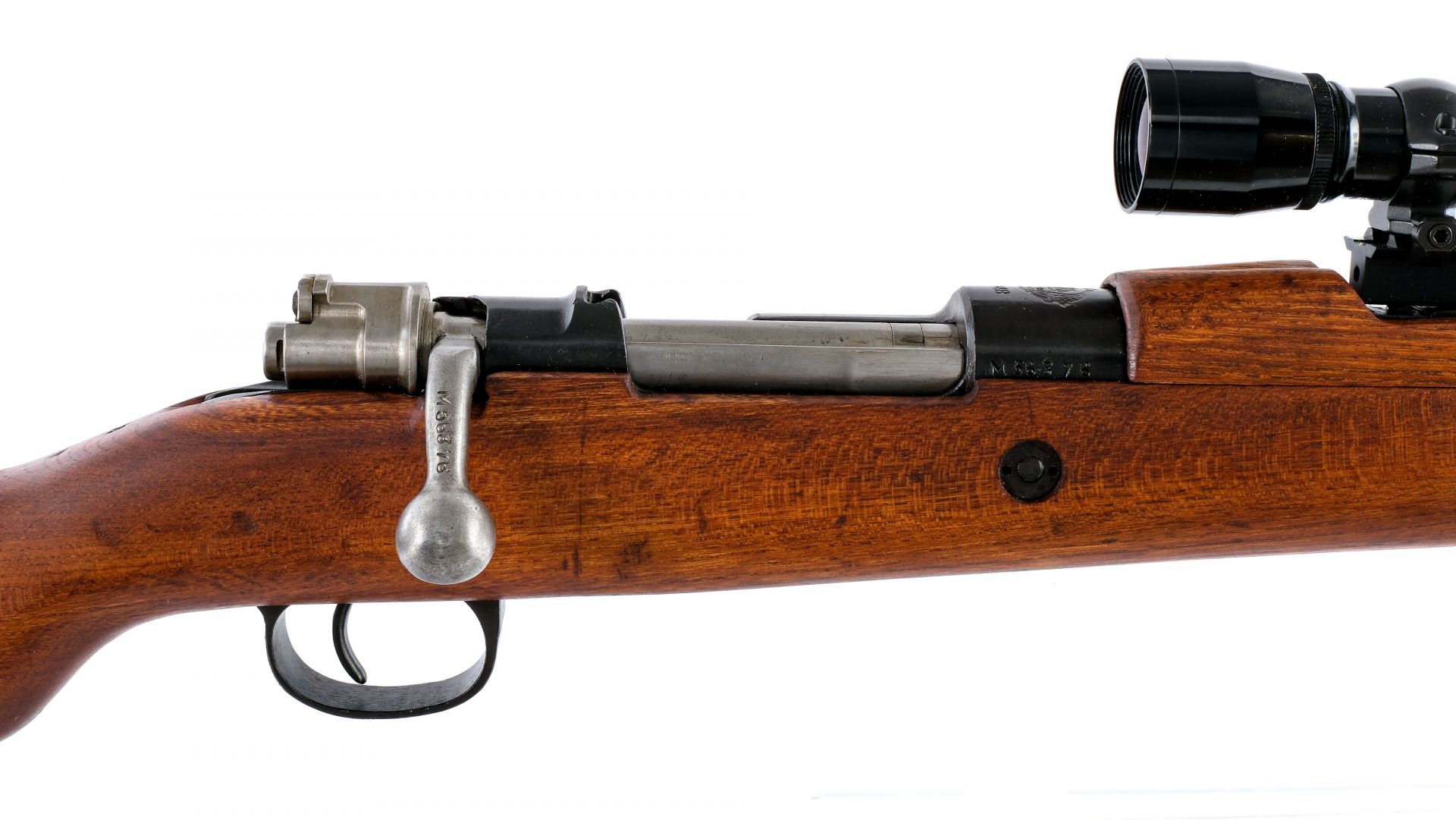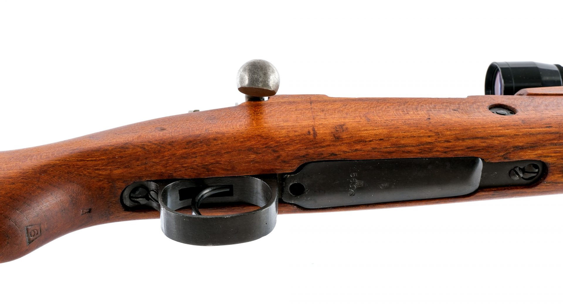 Description Zastava M48 in 7.92x57mm (8mm) with a five round capacity and a 23.5″ barrel. Blued metal butt plate. Made in Yugoslavia and import marked on the top front of barrel by Interordnance Monroe NC. Smooth wood stock serial matching to the rifles receiver. Blued trigger guard, trigger, receiver and barrel. Rear bolt safety switch. Rear left side of receiver bolt release. Under muzzle end of barrel fixed bayonet lug and removable cleaning rod. Metal loops for mounting a shoulder sling. Rear sight has been removed and a Weaver Classic 2x28mm scope with clear glass and a duplex reticle. Matching serial number on the bolt, receiver, magazine floor plate and wood stock. Must ship to a C&R or FFL holder. Condition: Very Good with light scratches, dings, wood has been sanded down and handling wear. Clean rifled bore. Barrel Length: 23.5″ Serial: M56376 Manufacturer: Zastava Caliber: 8mm Model: M48 Book# 05280